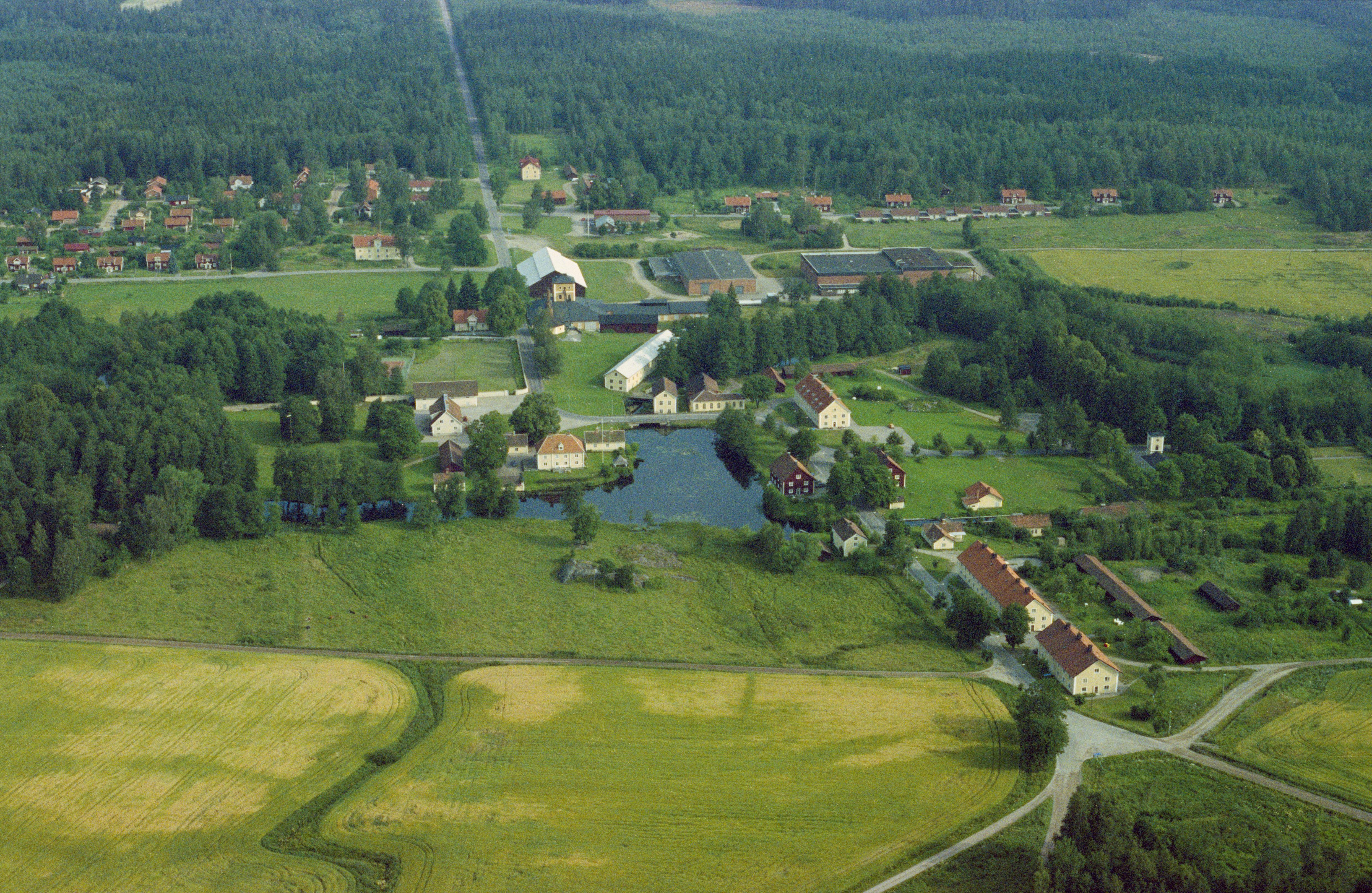 Beskrivning: Brevens bruk, hytt- och hammarområde RAÄnr Asker 258 vid Brevensån och sjöarna Botaren och Sottaren. Brevens kyrka till höger om bildens mitt. Bilden är tagen mot (väderstreck): N