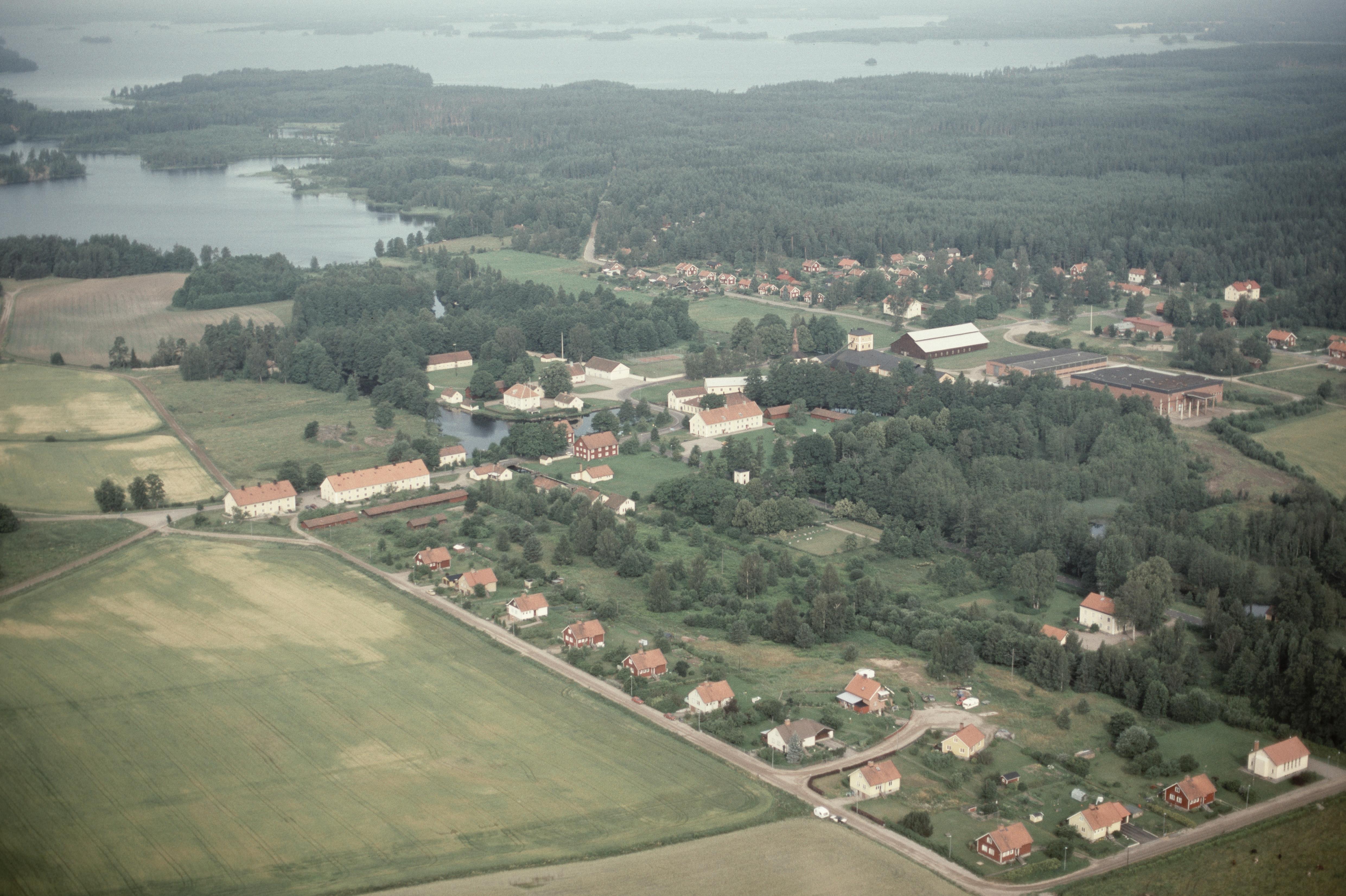Beskrivning: Brevens bruk, hytt- och hammarområde RAÄnr Asker 258 vid Brevensån och sjöarna Botaren och Sottaren. Brevens kyrka vid bildens mitt. Bilden är tagen mot (väderstreck): VNV