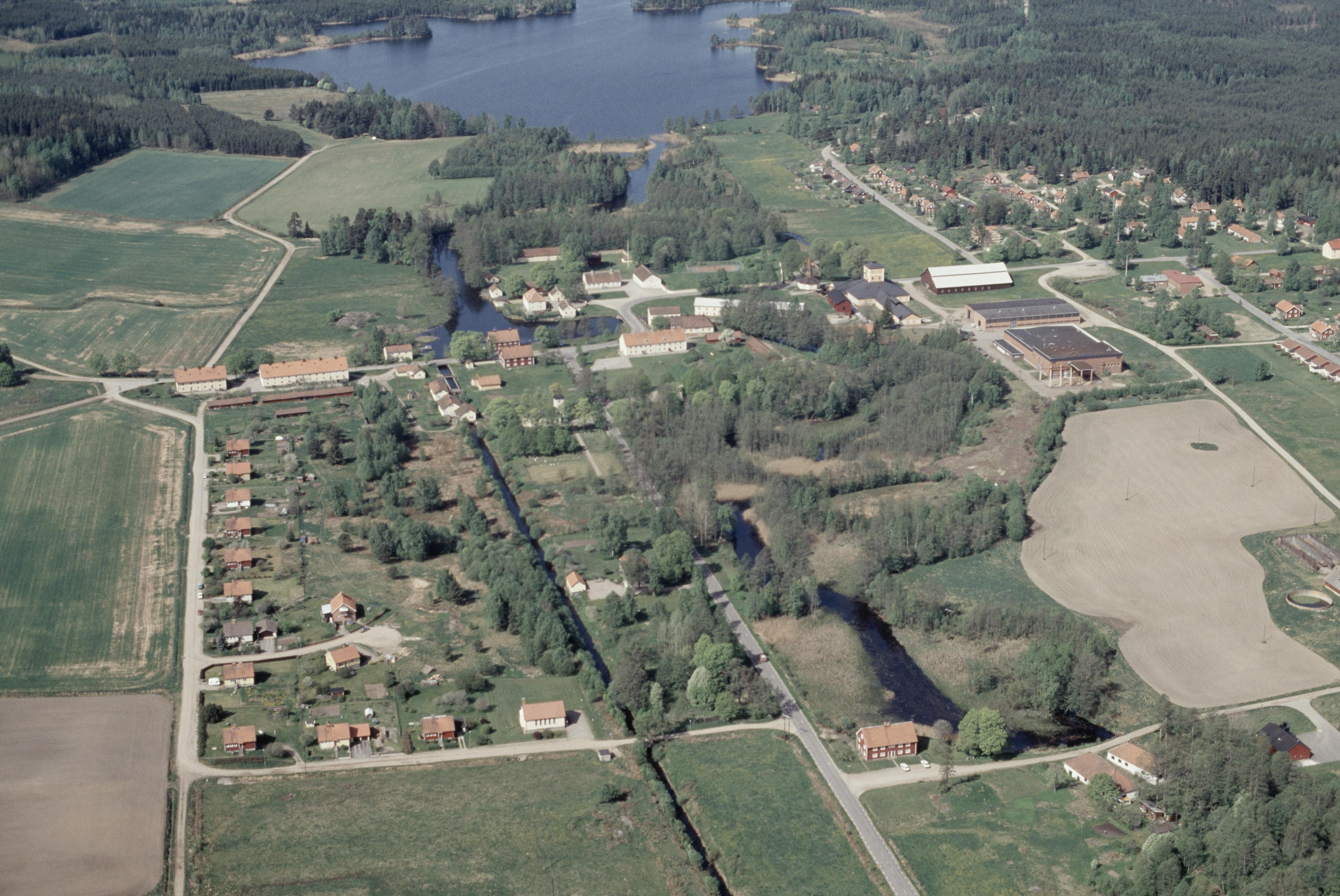 Beskrivning: Brevens bruk, hytt- och hammarområde RAÄnr Asker 258 vid Brevensån och sjöarna Botaren och Sottaren. Brevens kyrka bak träden till vänster om bildens mitt. Bilden är tagen mot (väderstreck): VSV