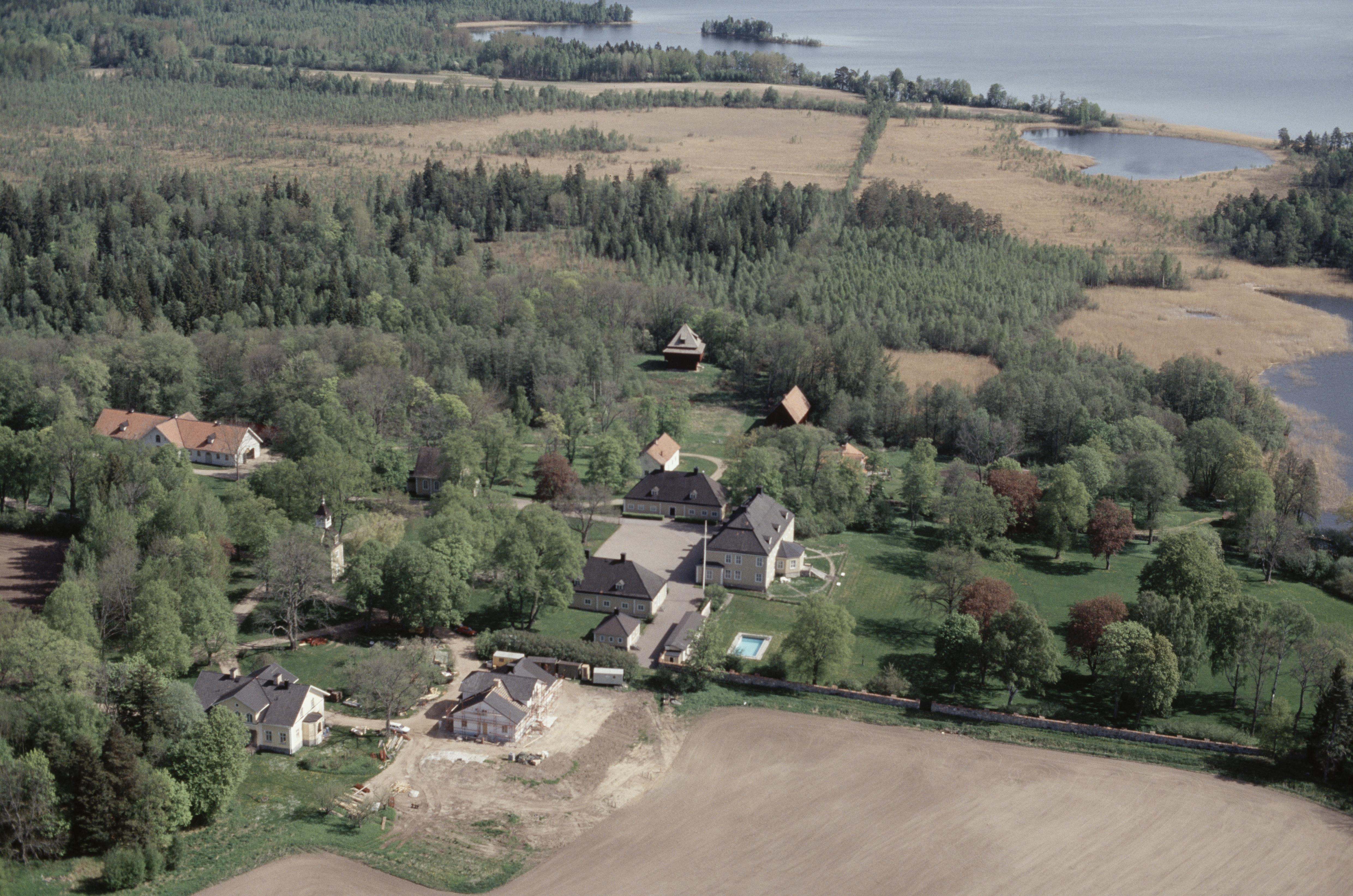 Beskrivning: Bystads herrgård fastighet Bystad 1:7 vid Bystadviken. Fatbursbyggnad vid bildens mitt. Bilden är tagen mot (väderstreck): NO