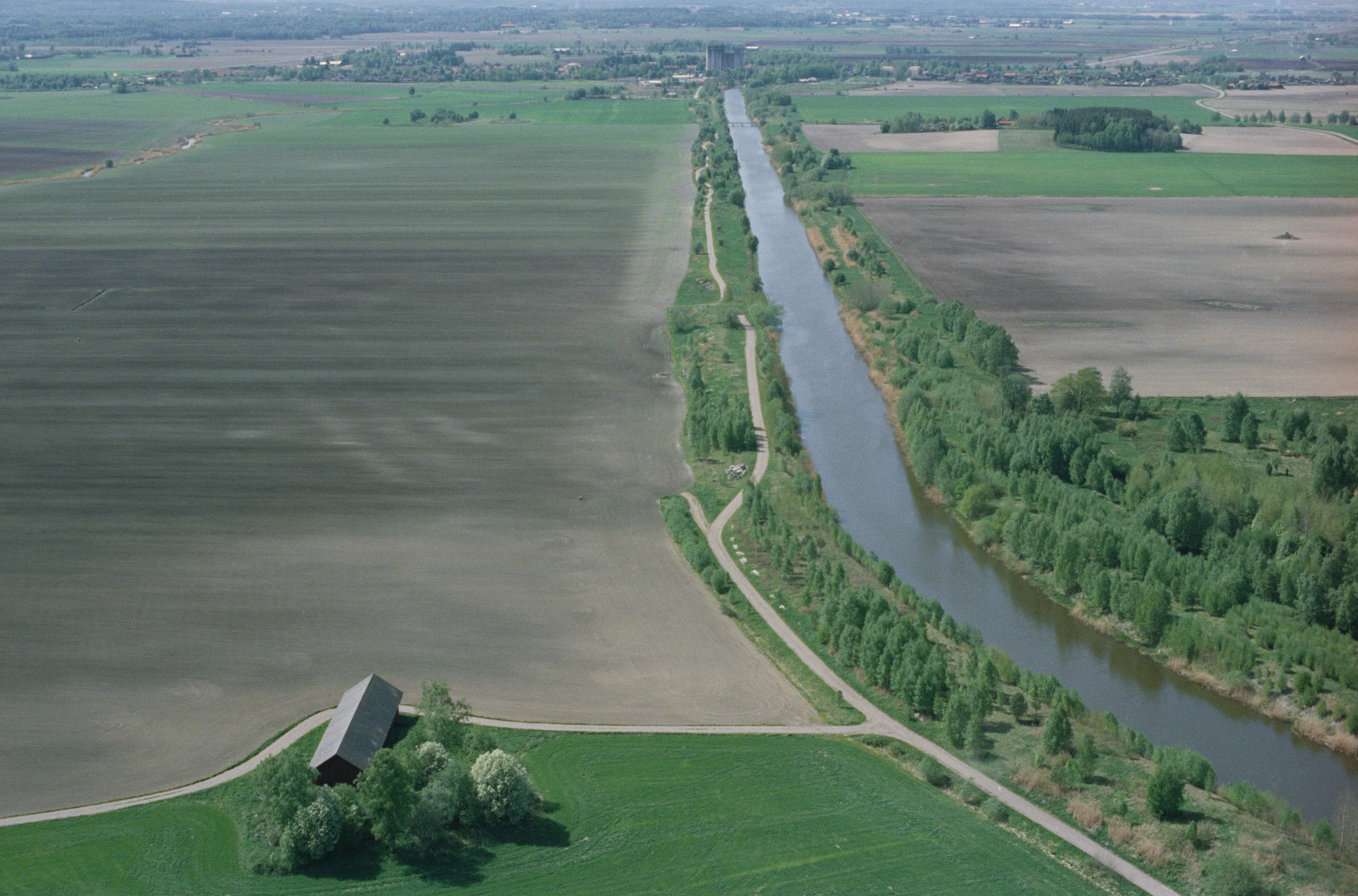 Beskrivning: Kvismare kanal norr om Eldtorpet. Vid bildens mitt gränsen mot socknen Asker (uppe till vänster) och Stora Mellösa (uppe till höger). I bildens övre del tätorten Odensbacken. Bilden är tagen mot (väderstreck): V