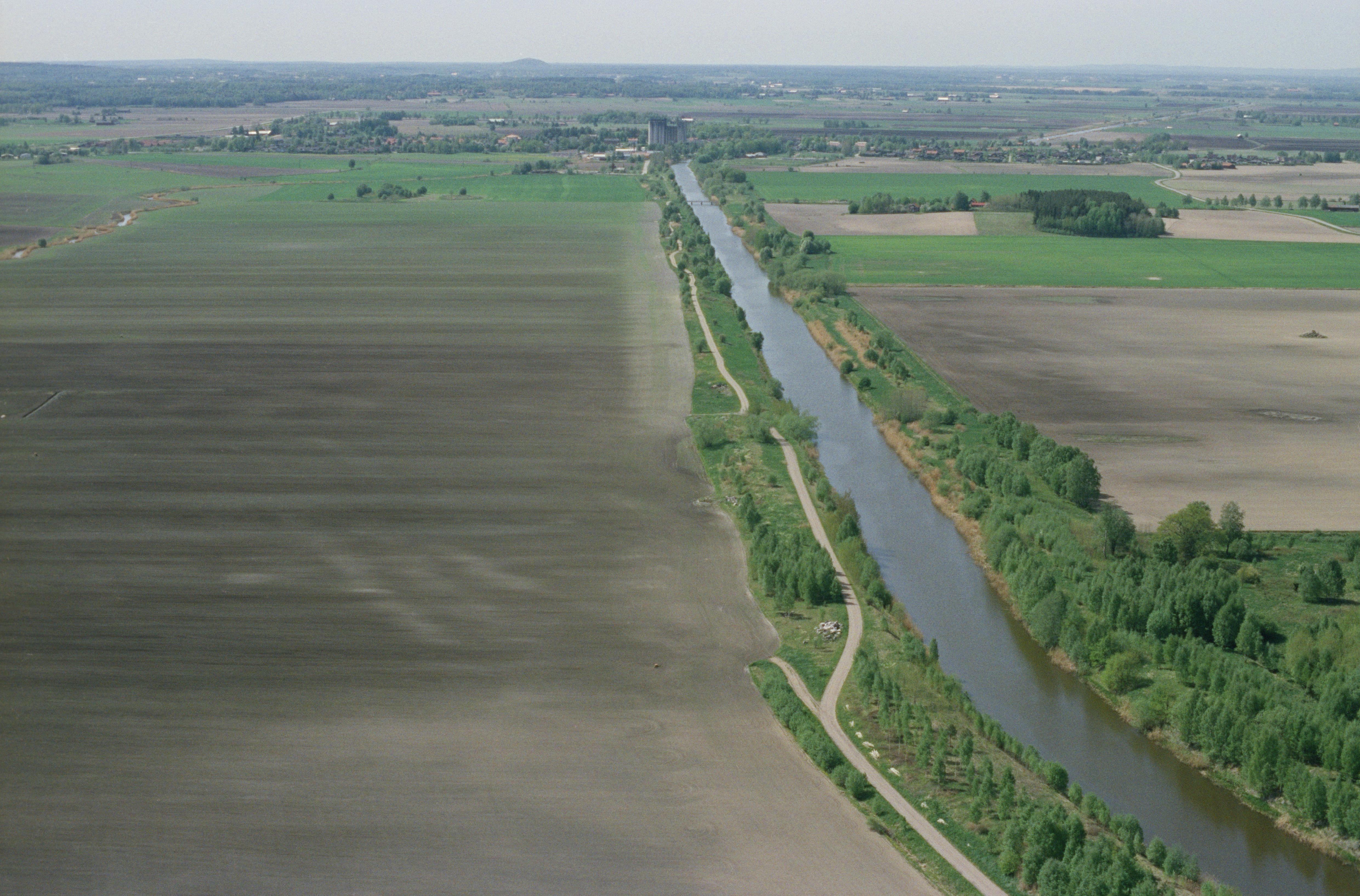 Beskrivning: Kvismare kanal norr om Eldtorpet. Vid bildens mitt gränsen mot socknen Asker (uppe till vänster) och Stora Mellösa (uppe till höger). I bildens övre del tätorten Odensbacken. Bilden är tagen mot (väderstreck): V