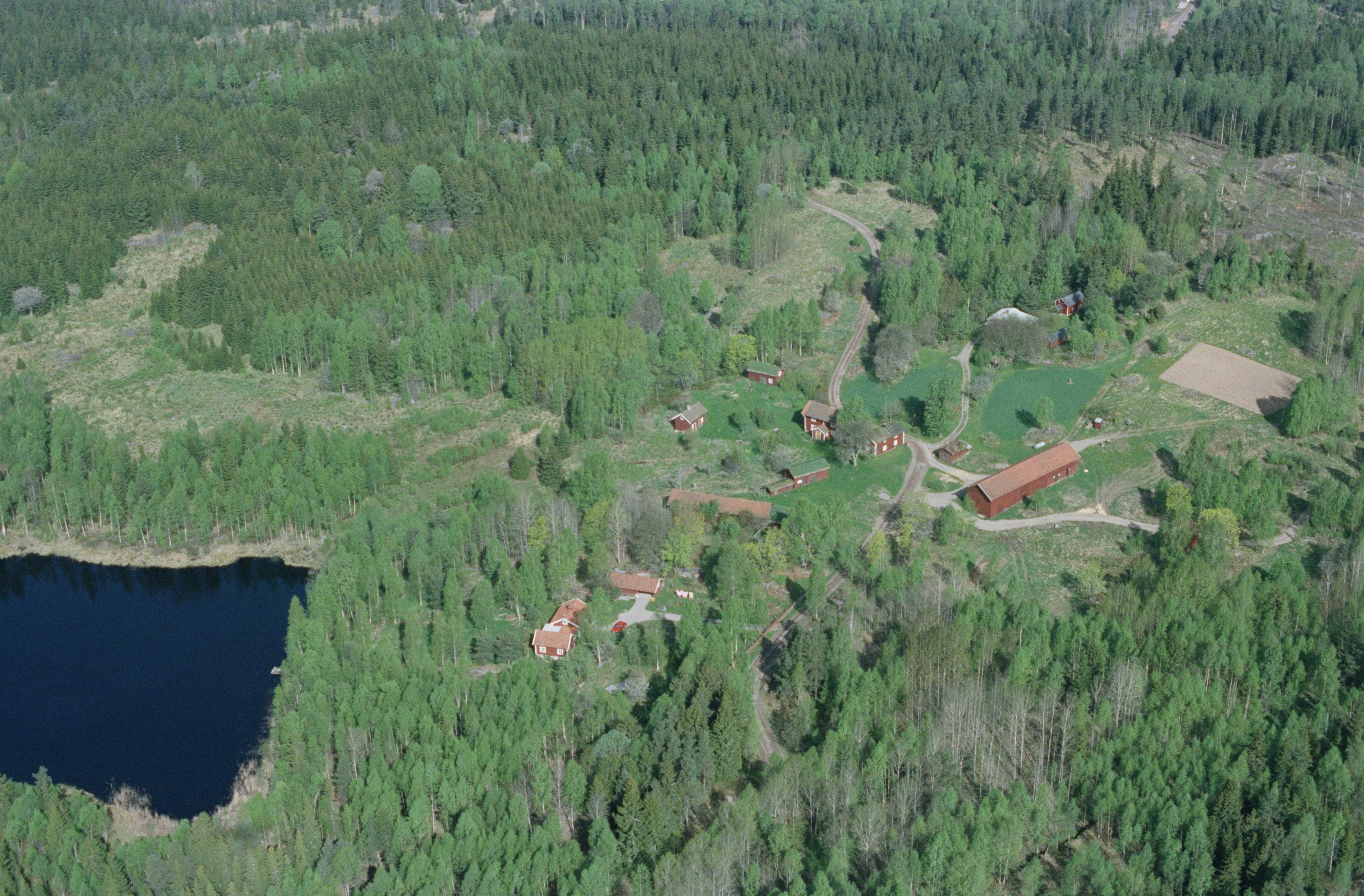 Beskrivning: Västra och Östra Nordhult. Tivedsby dubbelgård vid Nordhultasjön. Bilden är tagen mot (väderstreck): V