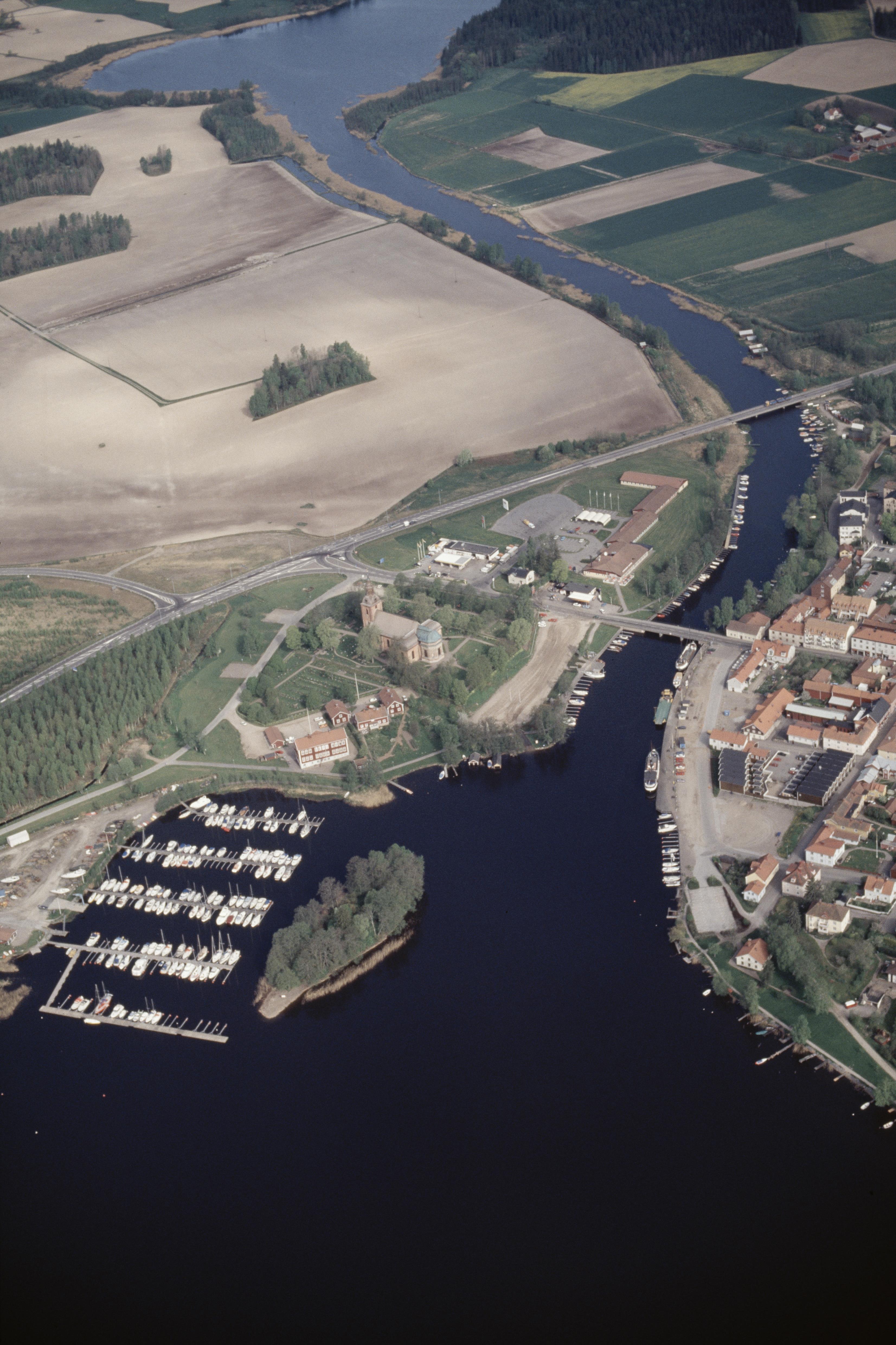 Beskrivning: Askersunds tätort vid Sundet och sjön. Askersunds Landskyrka vid bildens mitt. Bilden är tagen mot (väderstreck): NV