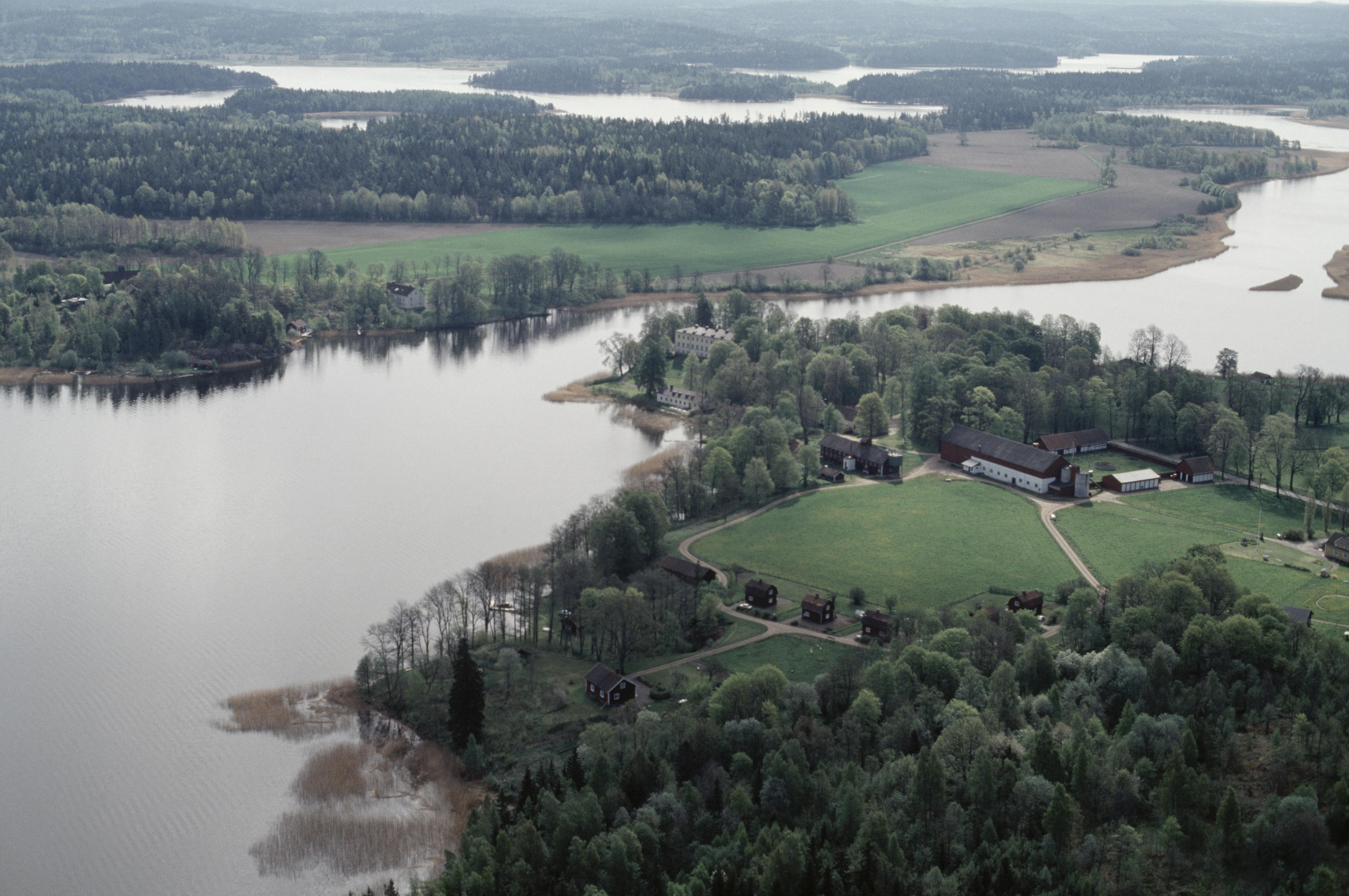 Beskrivning: Till vänster Edö herrgård. Vid bildens mitt Stjernsunds slott (skrivs även Stjärnsunds slott) byggnadsminne Askersund 5:1 vid sjön Alsen. I bildens övre del till höger socknet Hammar. Bilden är tagen mot (väderstreck): SO