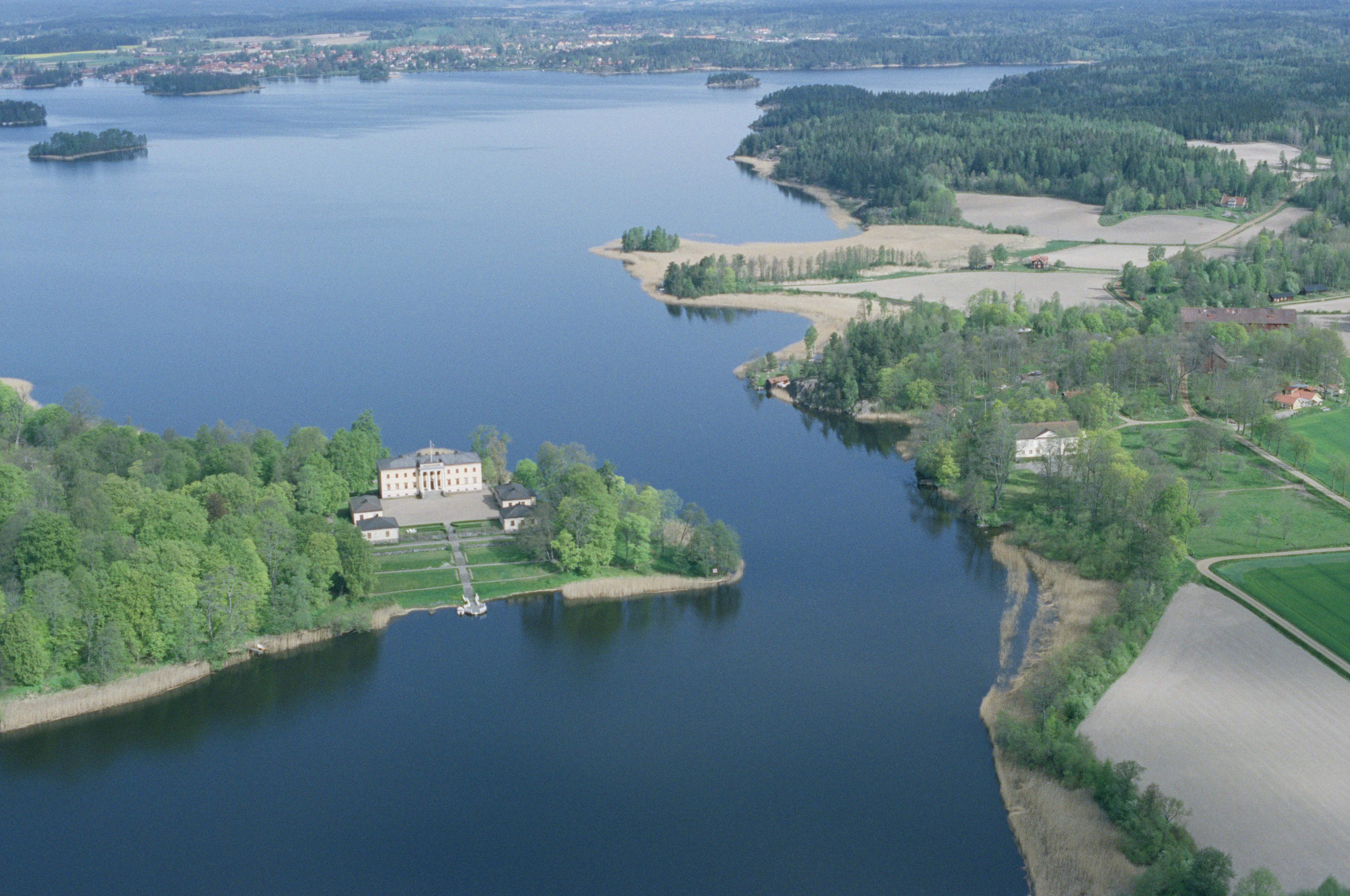 Beskrivning: Till vänster Stjernsunds slott (skrivs även Stjärnsunds slott) byggnadsminne Askersund 5:1 vid sjön Alsen. Till höger Edö herrgård. Bilden är tagen mot (väderstreck): NNV