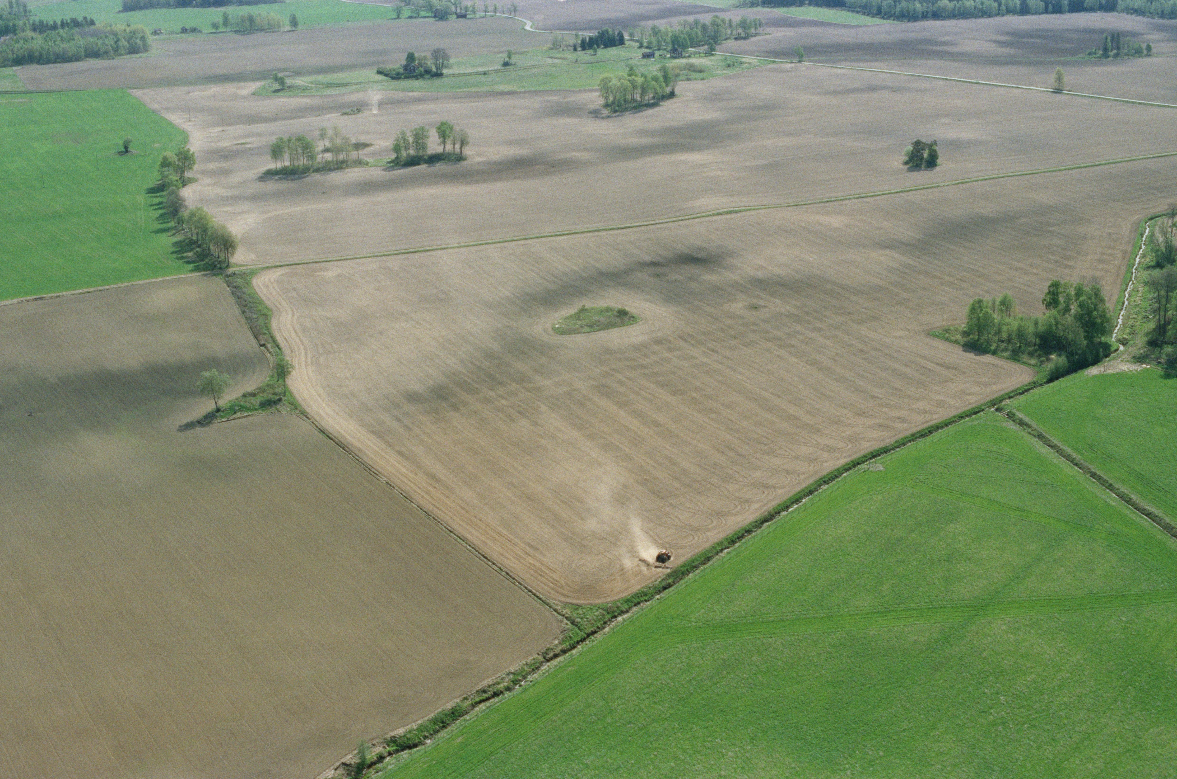 Beskrivning: Vårbruk i åker vid Averby i området vid Boskulla, I bildens övre kant husgrund RAÄnr Bo 160. Bilden är tagen mot (väderstreck): Ö