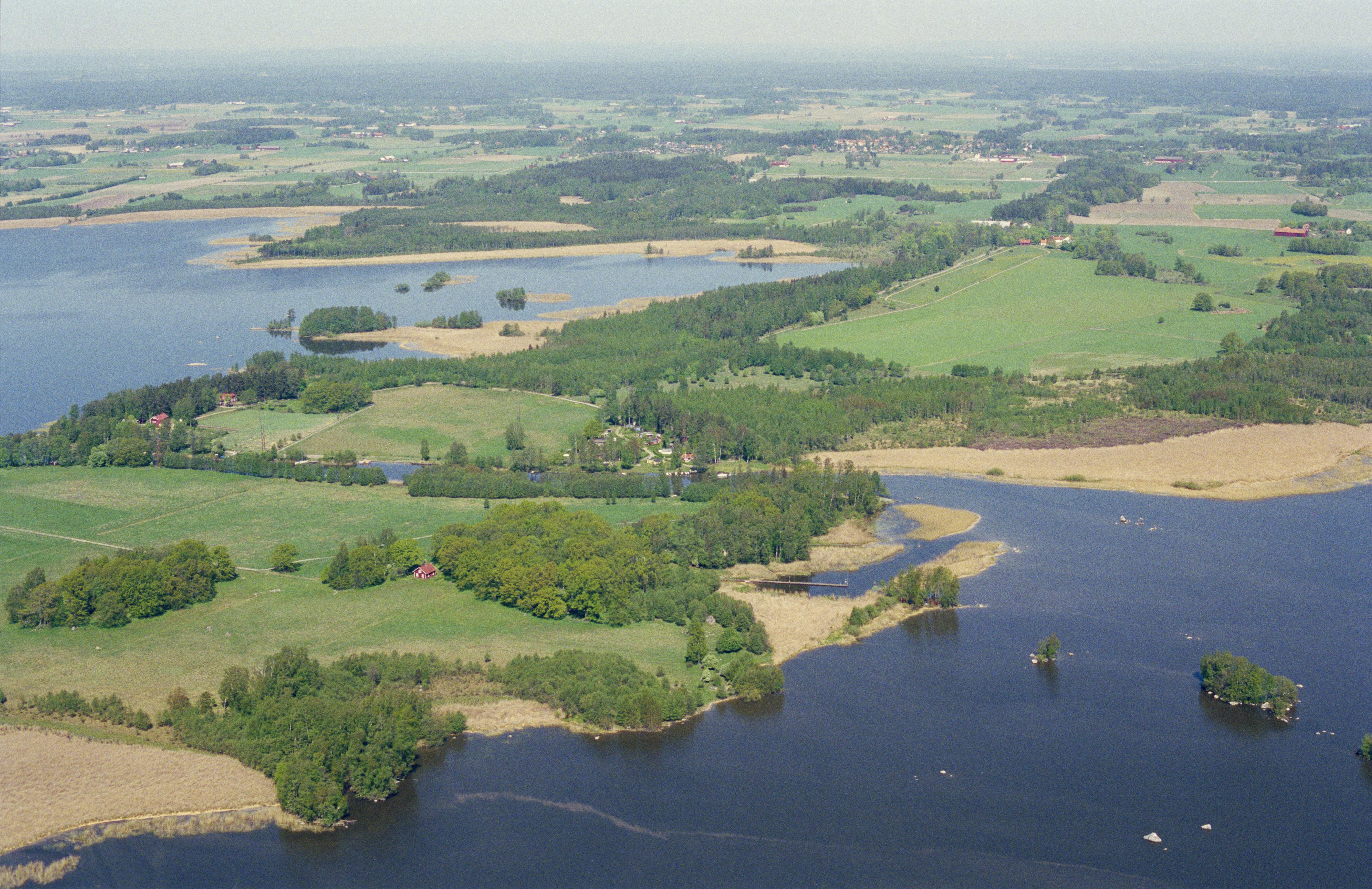 Beskrivning: Ollebo, Ekudden och Södra Viken på Äsön. I bildens övre del Skävesund och Skävesunds herrgård i socknet Glanshammar. Bilden är tagen mot (väderstreck): N