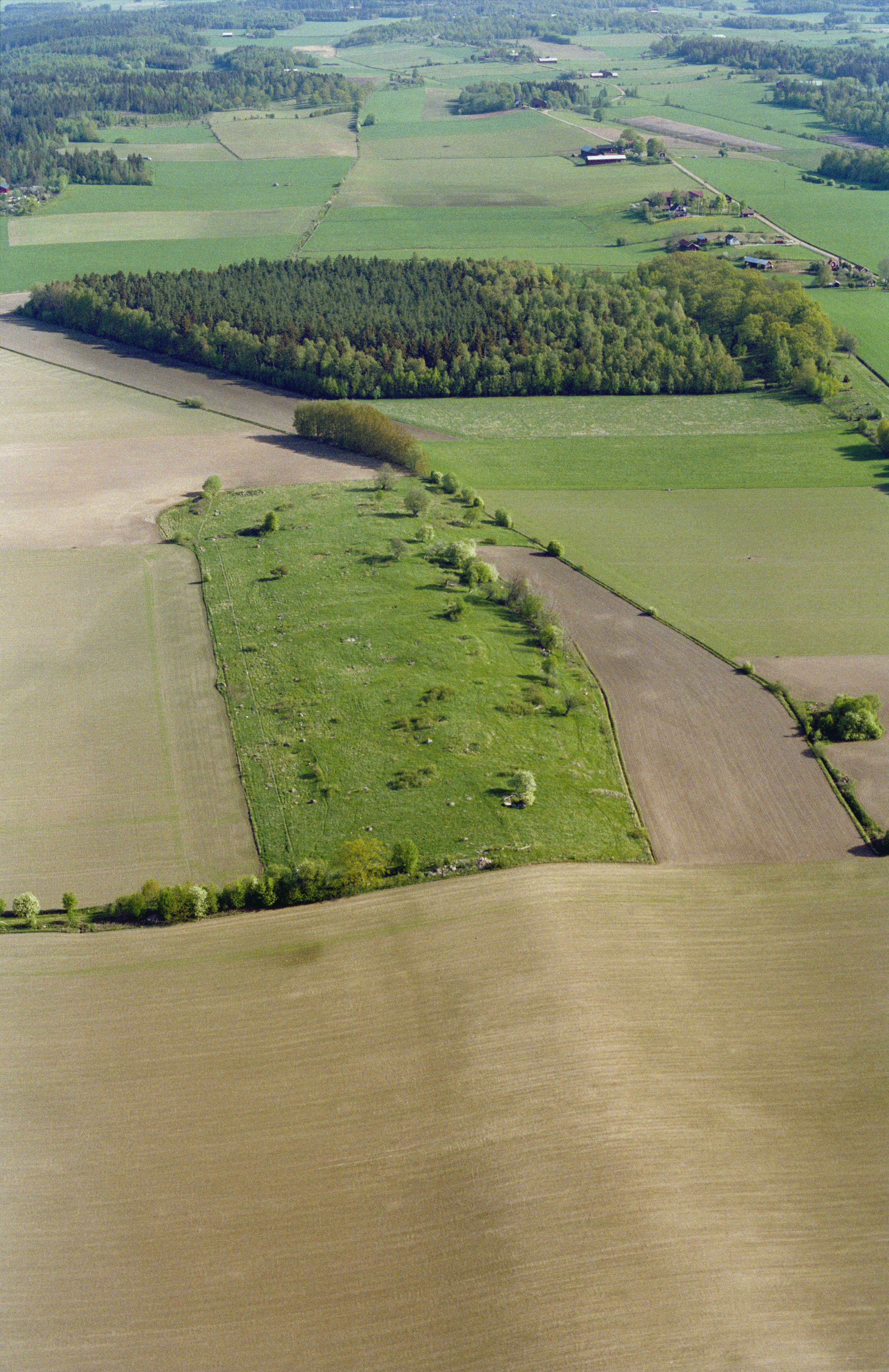 Beskrivning: Drumlinområde. Tjugesta gamla tomt RAÄnr Hackvad 34:1. Här låg under medeltiden ett trettiotal byggnader. Bilden är tagen mot (väderstreck): NNO
