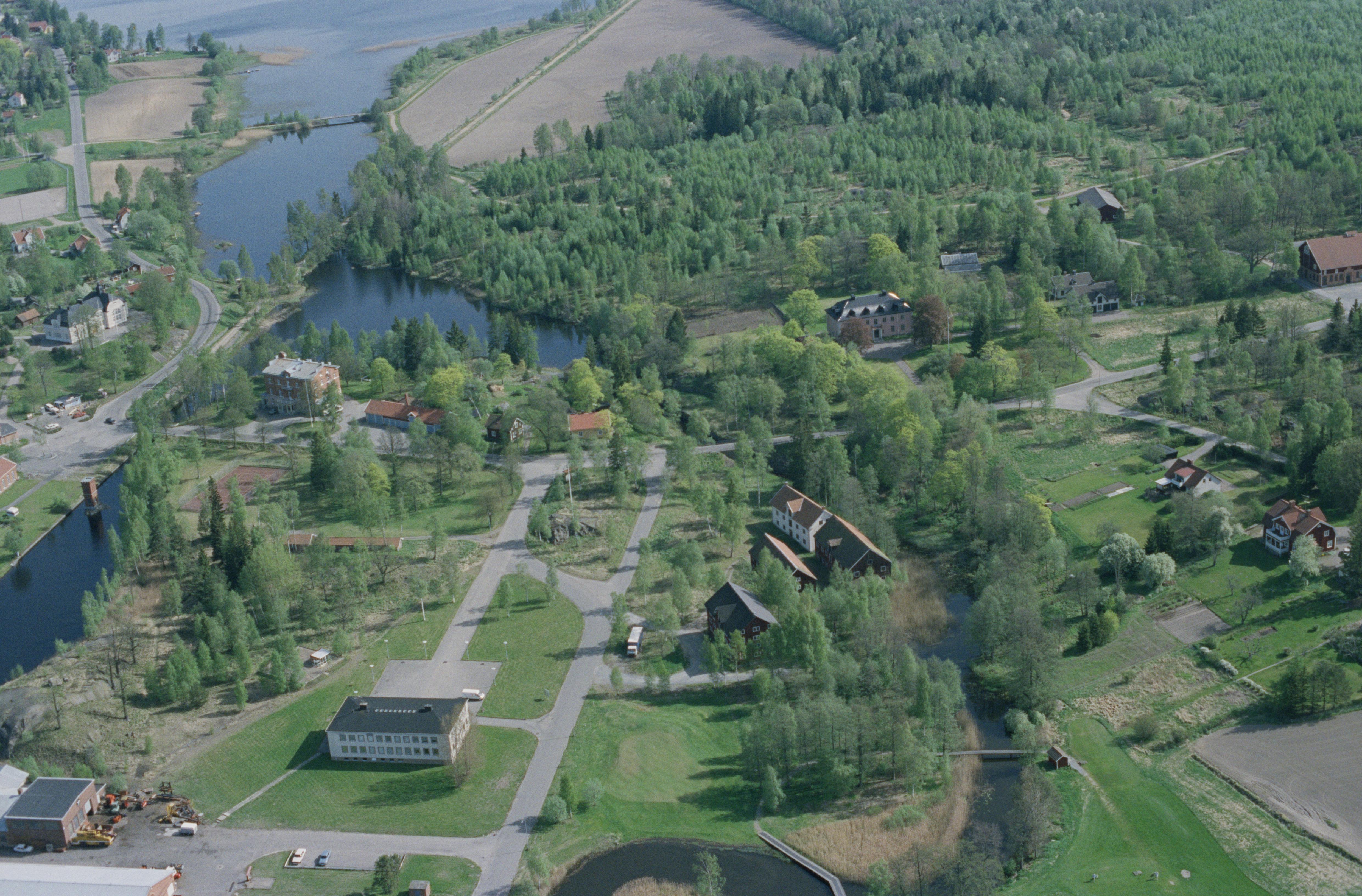 Beskrivning: Åmmebergs bruk mellan Tomteviken och Åmmelången. Åmmebergs herrgård vid bildens mitt. Bilden är tagen mot (väderstreck): NO