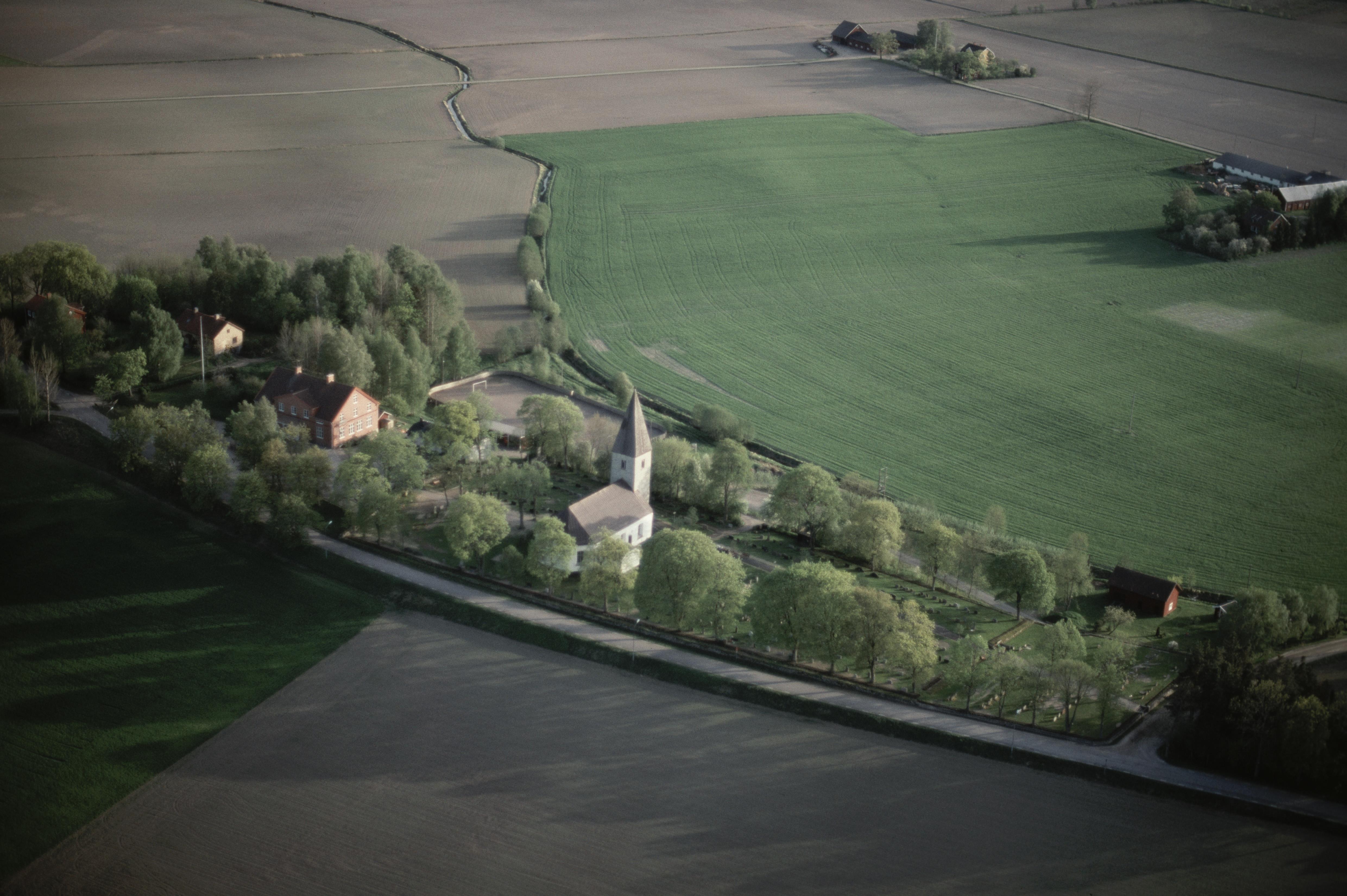Beskrivning: Hardemo kyrka och kyrkby. Bilden är tagen mot (väderstreck): SV