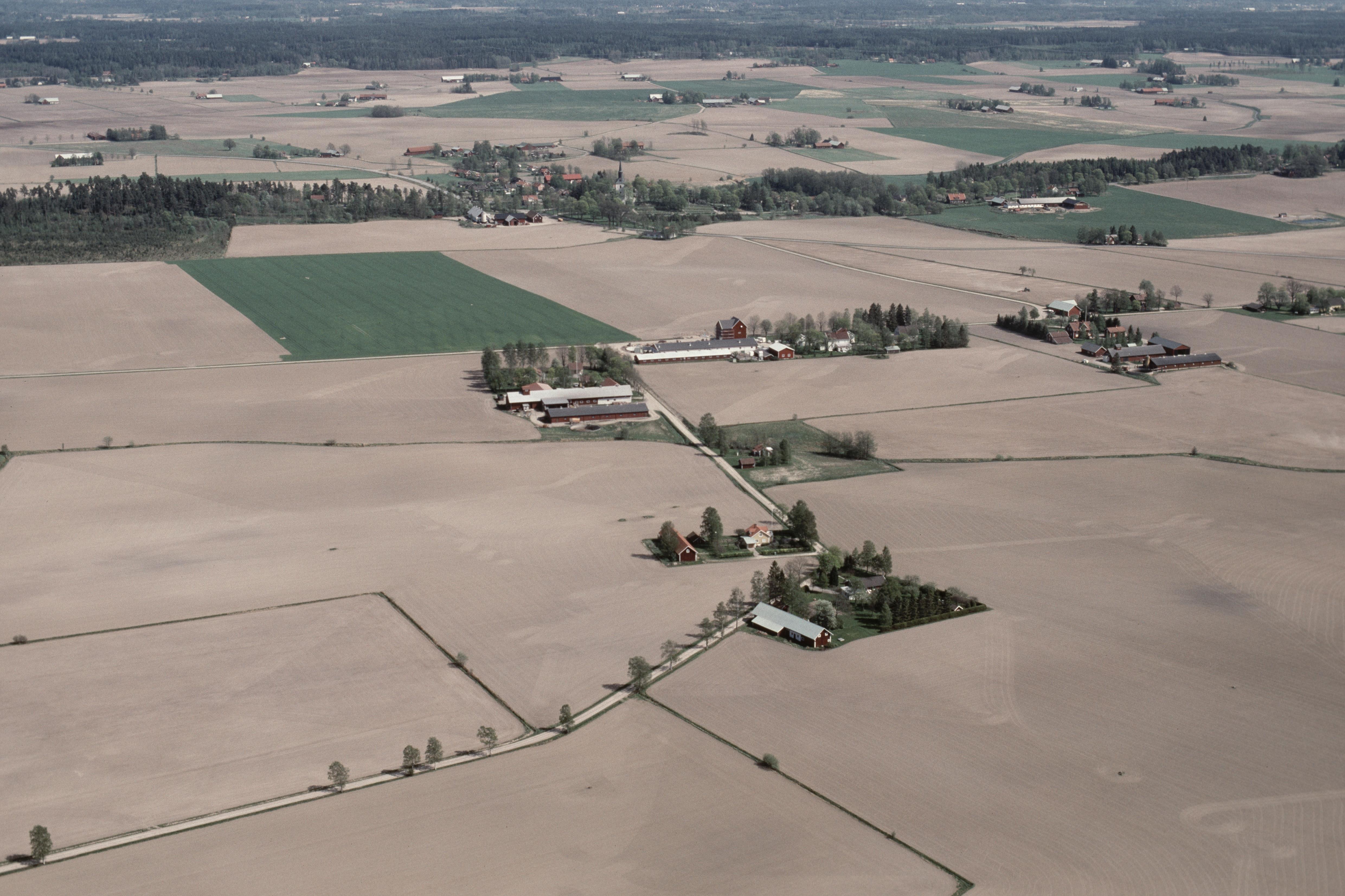 Beskrivning: Falla by. I bildens övre del Kils kyrka och kyrkbyn Närkes Kil. Bilden är tagen mot (väderstreck): Ö