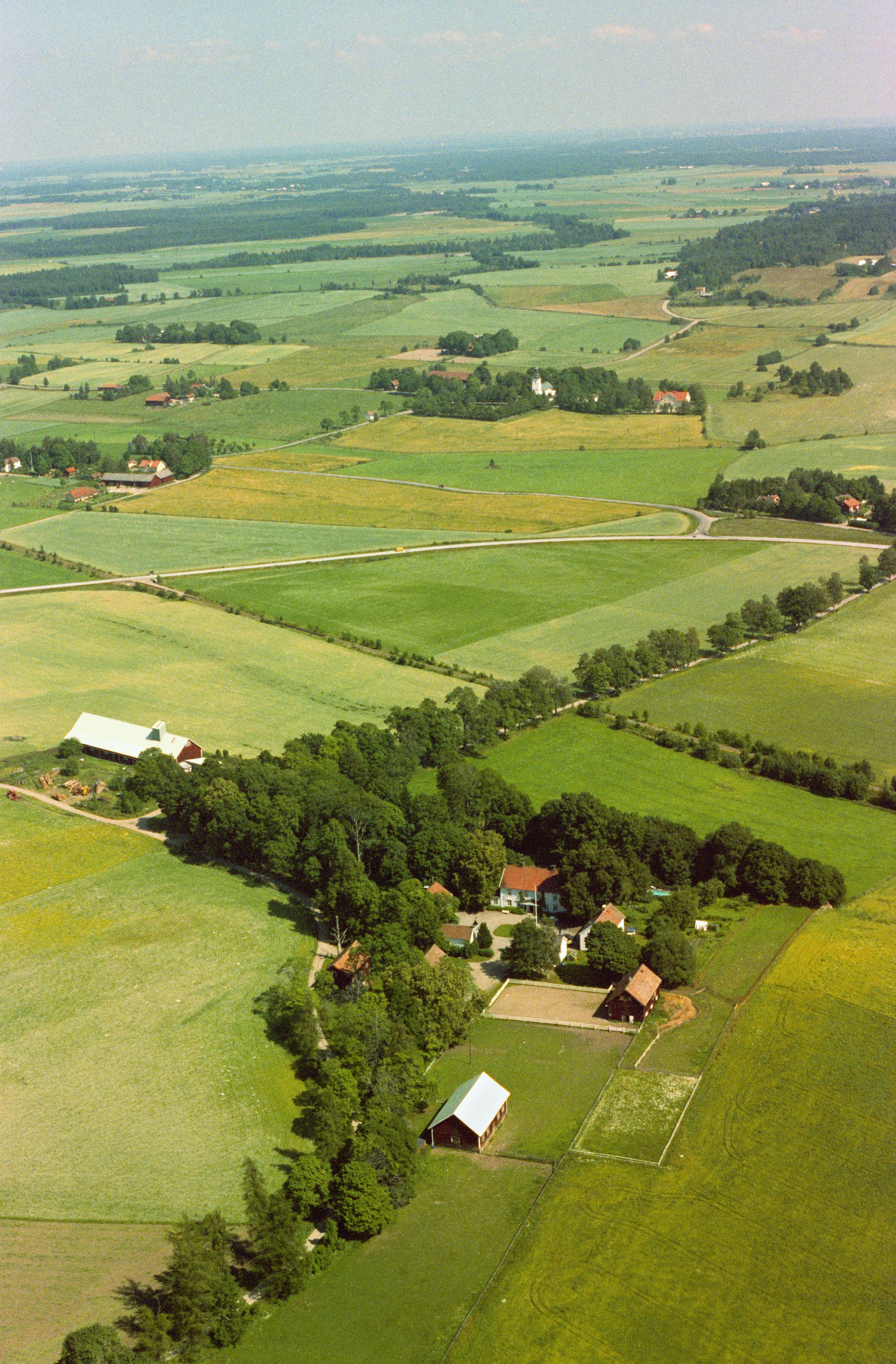 Beskrivning: Berga gård. I bildens övre del Knista kyrka. Bilden är tagen mot (väderstreck): ONO