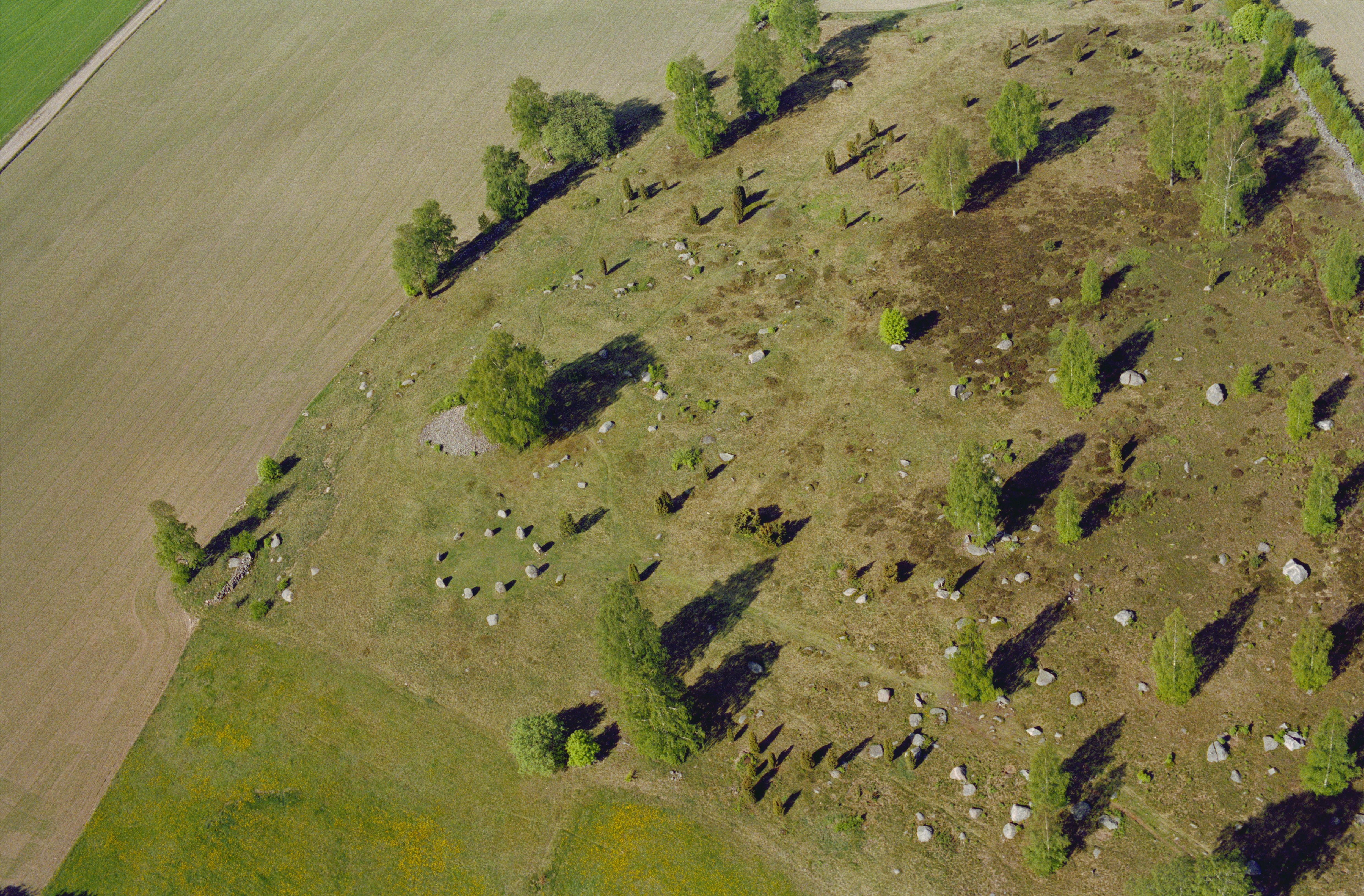 Beskrivning: Fossil åker och gravfält Lekebacken RAÄnr Kumla 35:1-2 i Hjortsberga by. Bilden är tagen mot (väderstreck): SV
