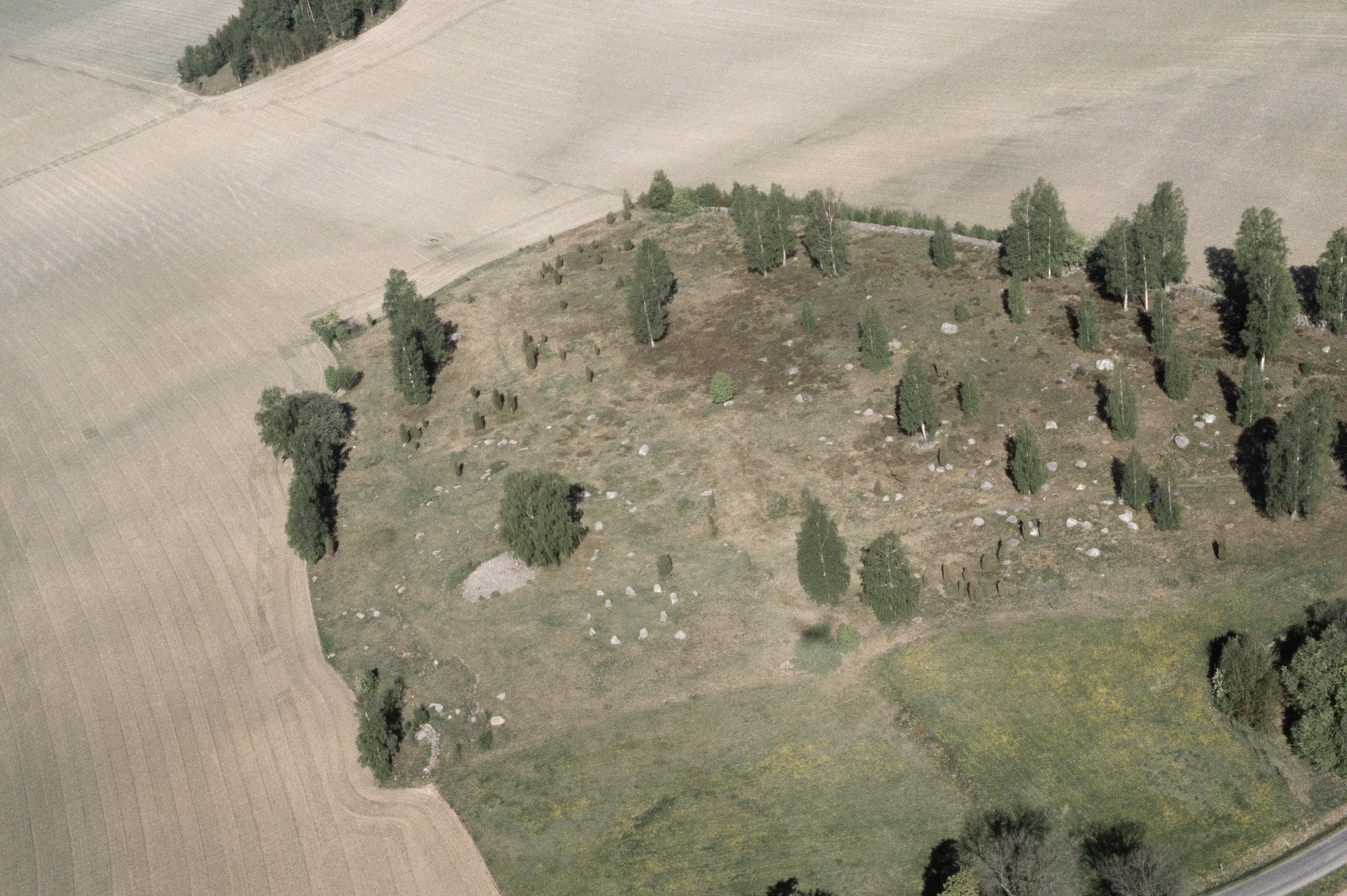 Beskrivning: Fossil åker och gravfält Lekebacken RAÄnr Kumla 35:1-2 i Hjortsberga by. Bilden är tagen mot (väderstreck): NV