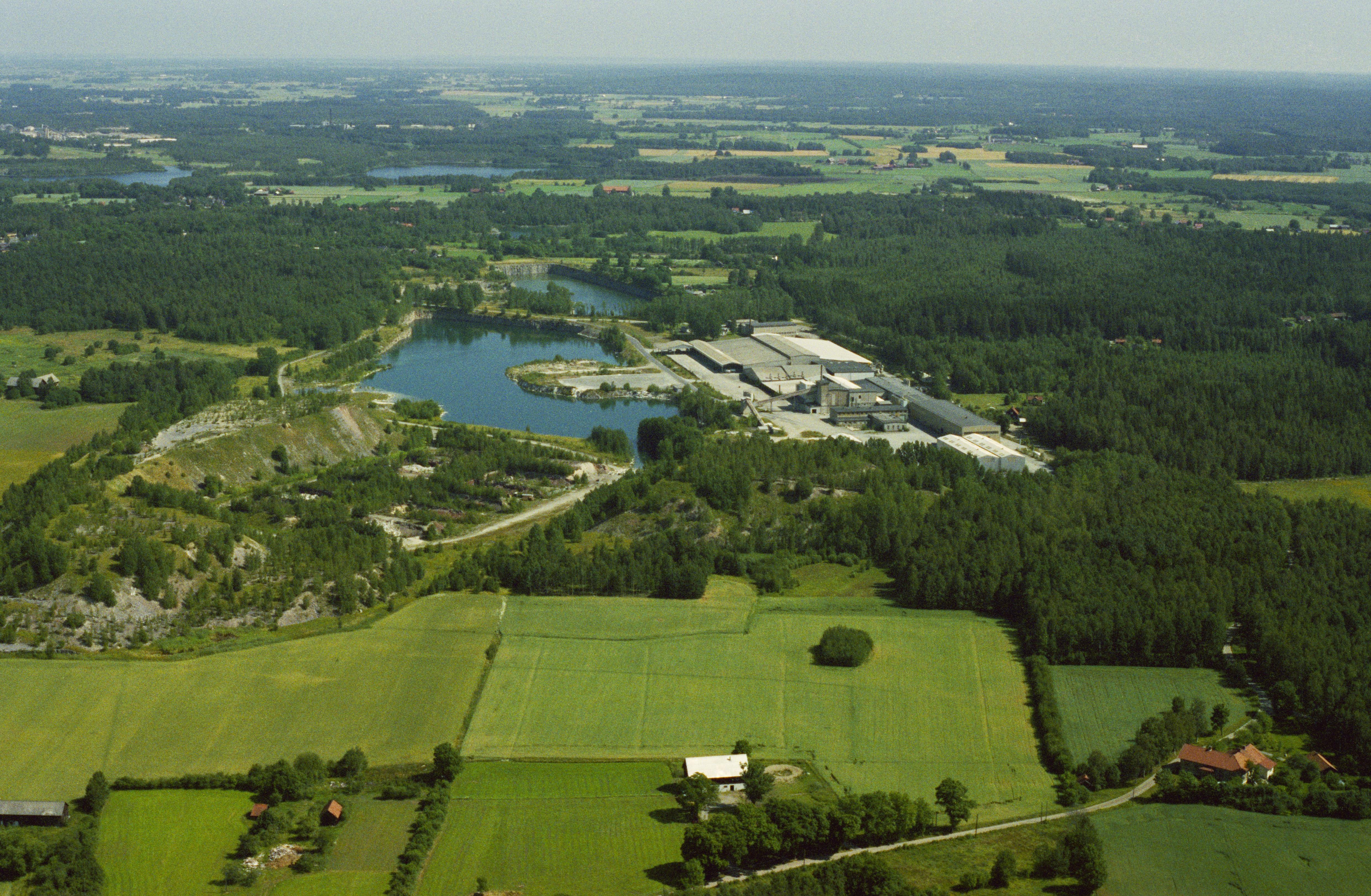 Beskrivning: Kvarntorp vid Hällabrottet och Hällkistan. Fossil åker RAÄnr Kumla 129:1 i bildens nedre del. Vid bildens mitt Kvarntorps betongindustri. I bildens övre del Ekeby socken med sjöarna Nordsjön och Söderhavet. Bilden är tagen mot (väderstreck): Ö