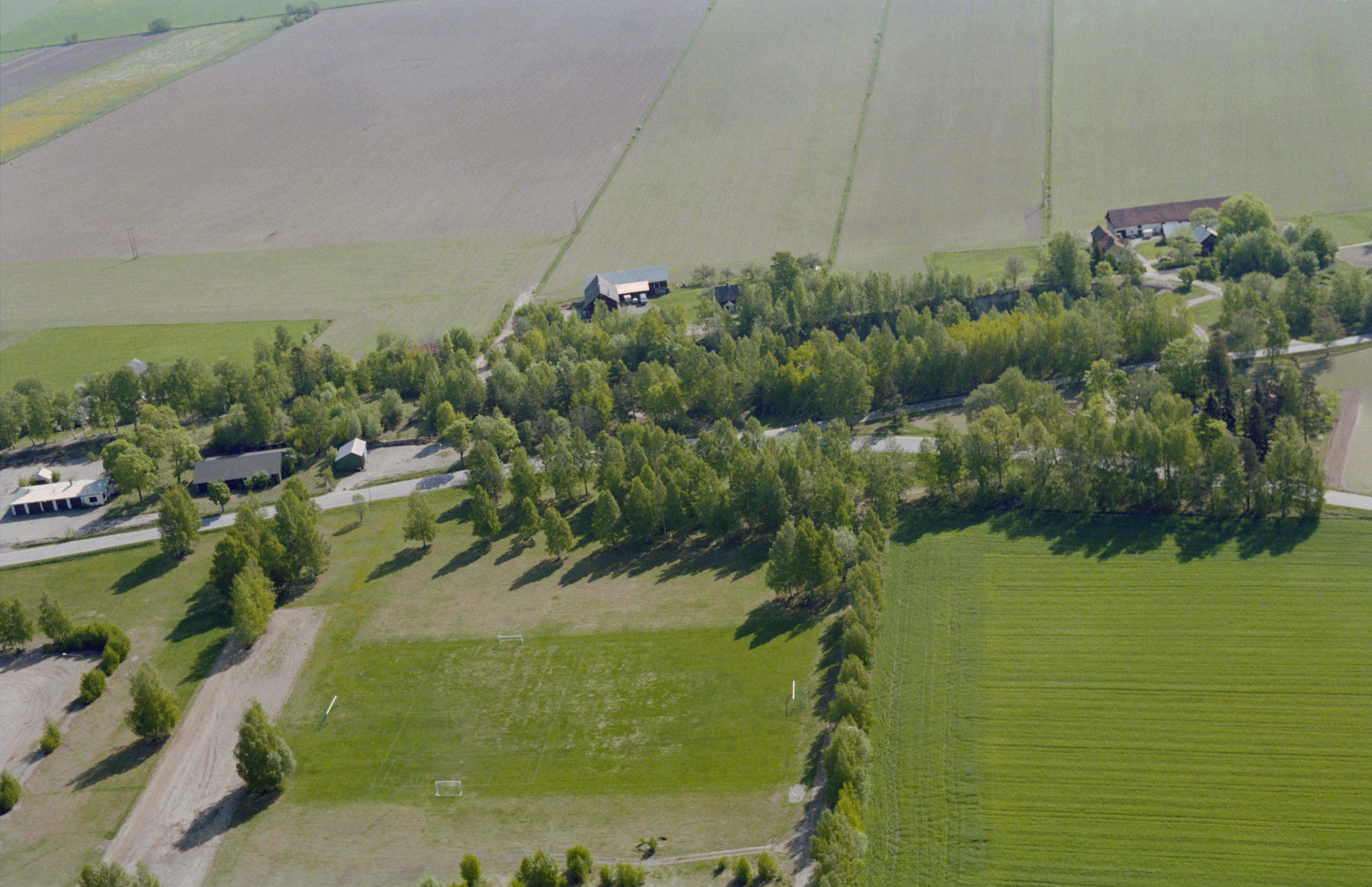 Beskrivning: Nygården i Sannaheds by. Under bildens mitt minnesmärke RAÄnr Kumla 46:1. I bildens övre del Marka by i socknet Hallsberg. Bilden är tagen mot (väderstreck): Ö
