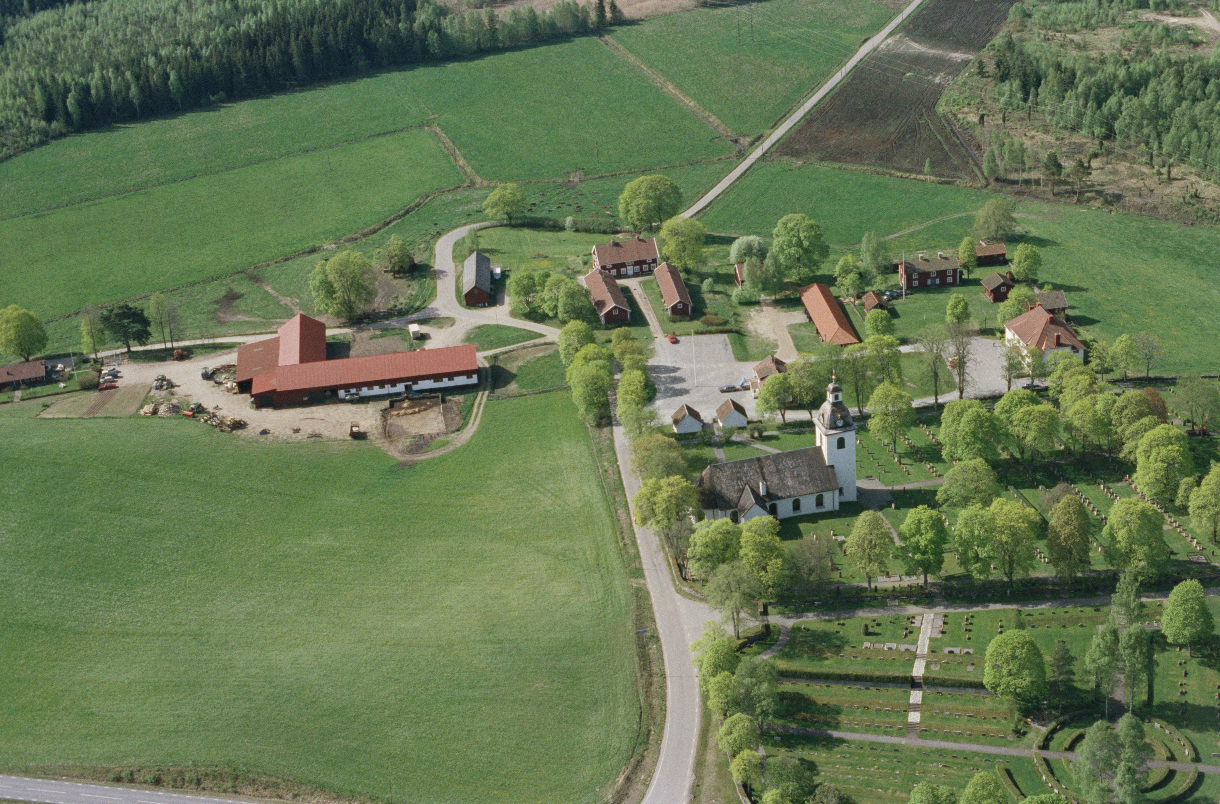 Beskrivning: Lerbäcks kyrka, Lerbäcks hembygdsgård RAÄnr Lerbäck 130:1 och Gamla gästgivaregård Lerbäck 148:1. Bilden är tagen mot (väderstreck): SV