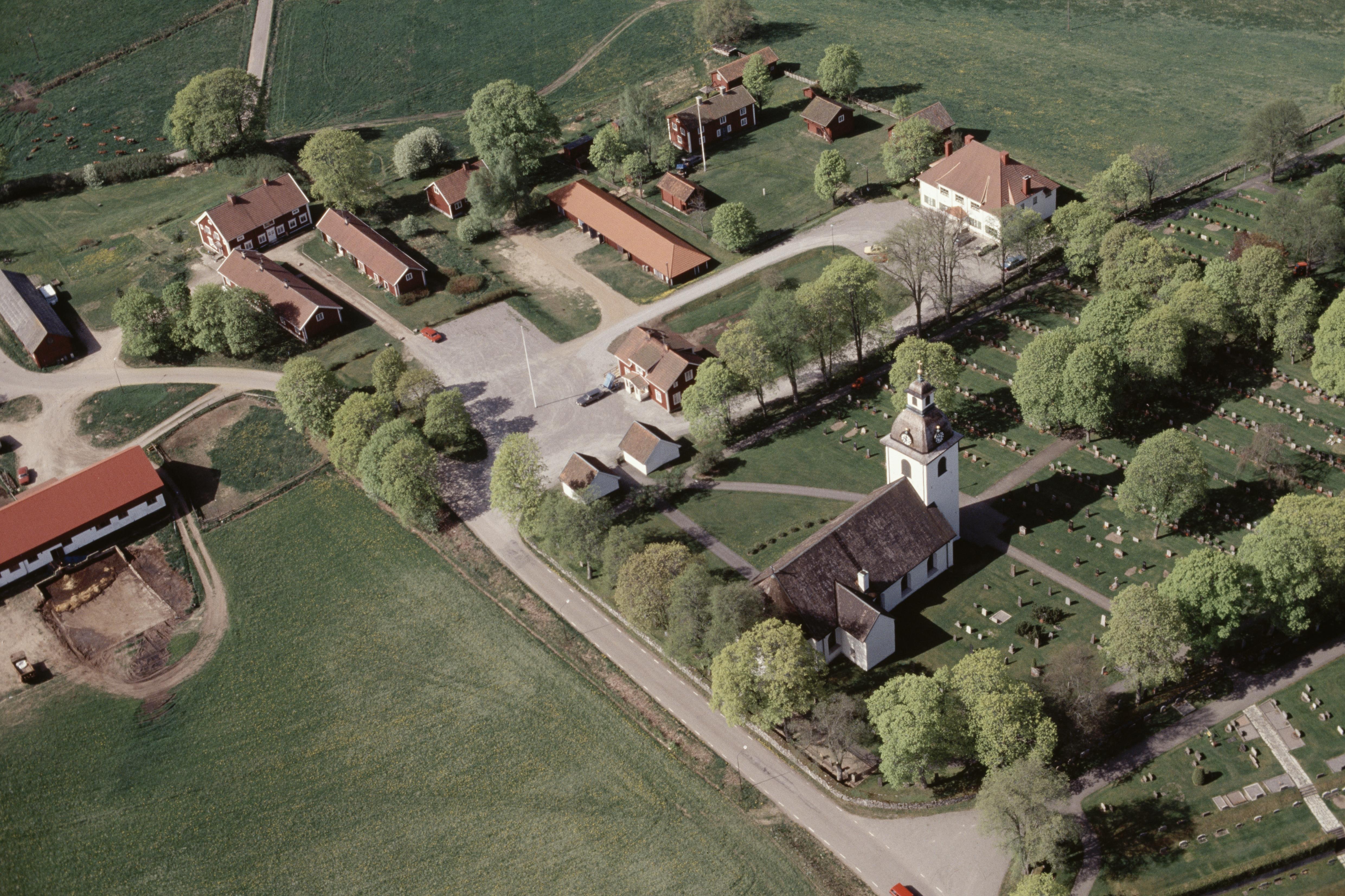 Beskrivning: Lerbäcks kyrka, Lerbäcks hembygdsgård RAÄnr Lerbäck 130:1 och Gamla gästgivaregård Lerbäck 148:1. Bilden är tagen mot (väderstreck): SV