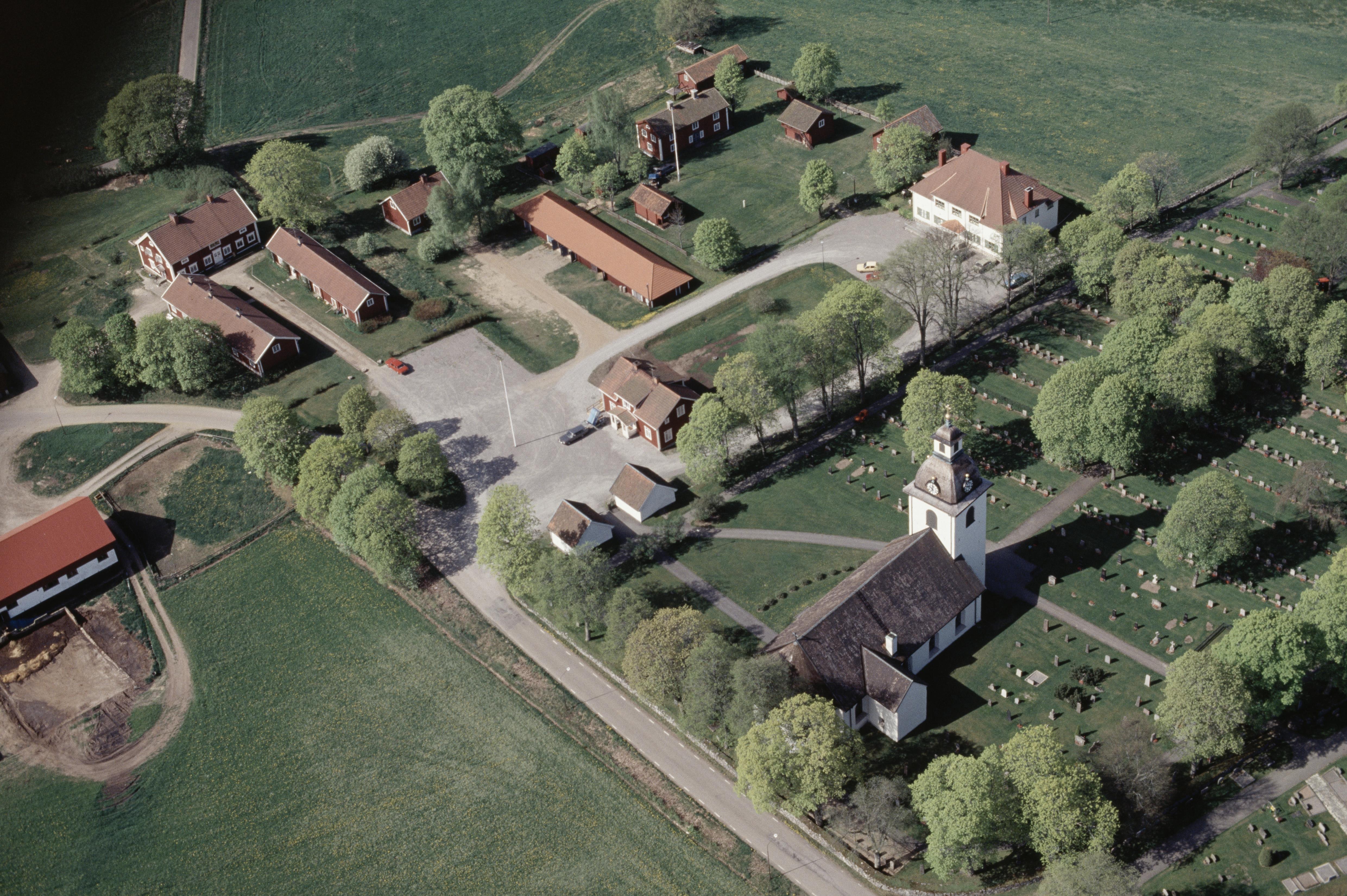 Beskrivning: Lerbäcks kyrka, Lerbäcks hembygdsgård RAÄnr Lerbäck 130:1 och Gamla gästgivaregård Lerbäck 148:1. Bilden är tagen mot (väderstreck): VSV
