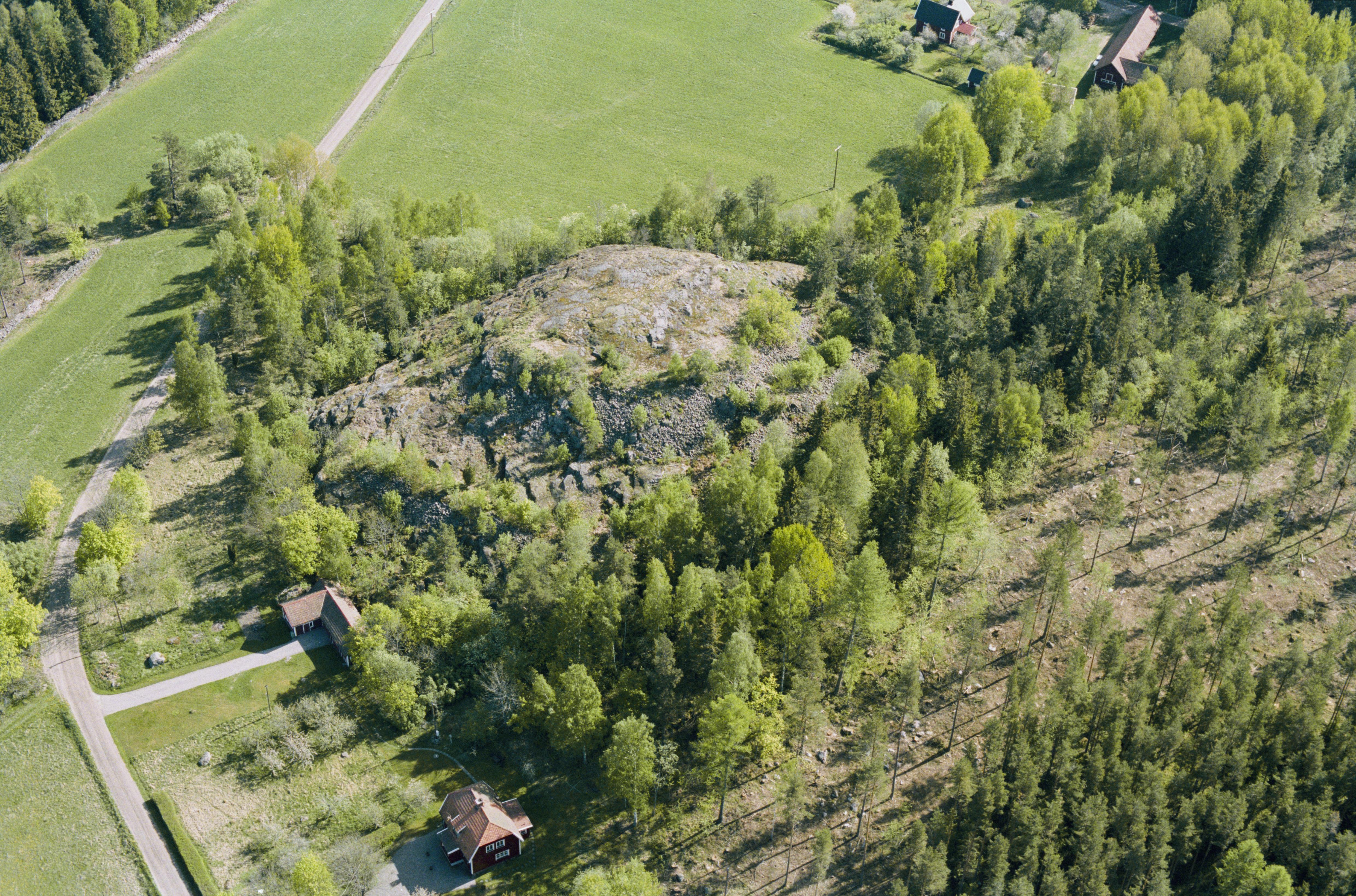 Beskrivning: Fornborg Omhällsberg (skrivs även Åmehäll, Åmehälla eller Omhällaborg) RAÄnr Sköllersta 28:1. Bilden är tagen mot (väderstreck): ONO