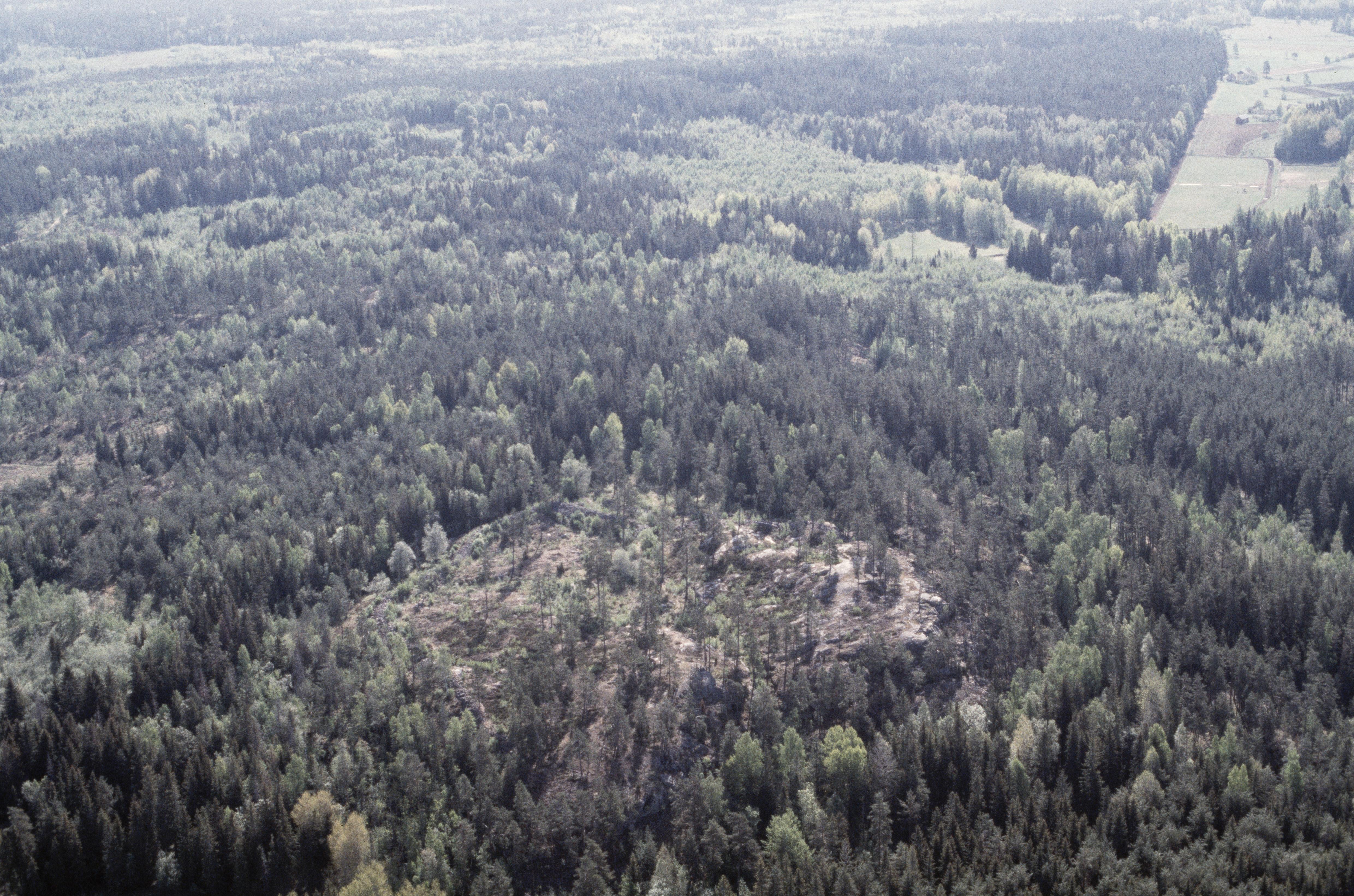 Beskrivning: Tarsta berg fornborg (skrivs även Tarstaborg) RAÄnr Sköllersta 27:1. Uppe till höger Gubbtäppan. Bilden är tagen mot (väderstreck): OSO