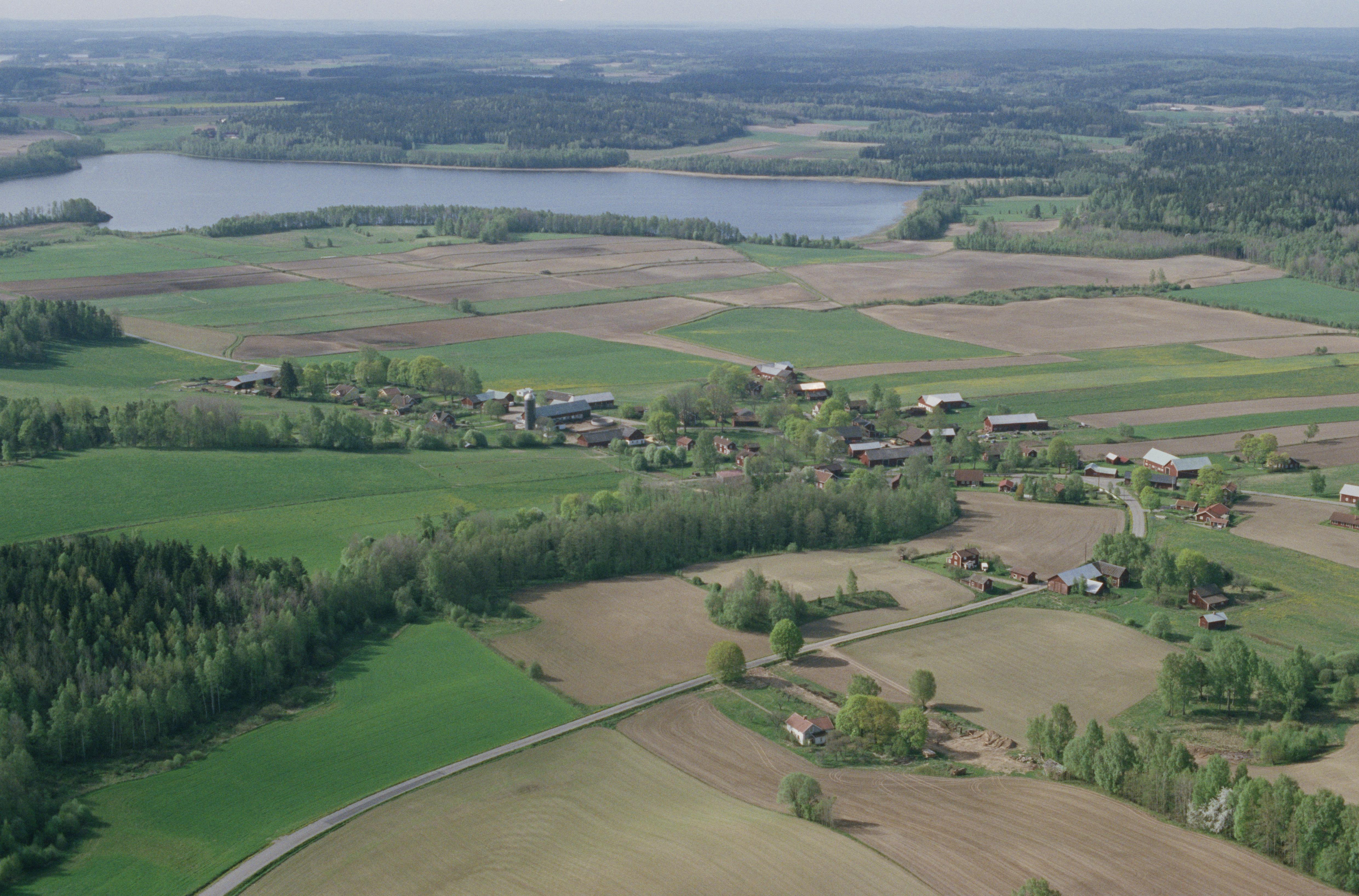 Beskrivning: Svinnersta by. Bytomt RAÄnr Snavlunda 262 vid bildens mitt. I bildens övre del sjön Anten. Bilden är tagen mot (väderstreck): S