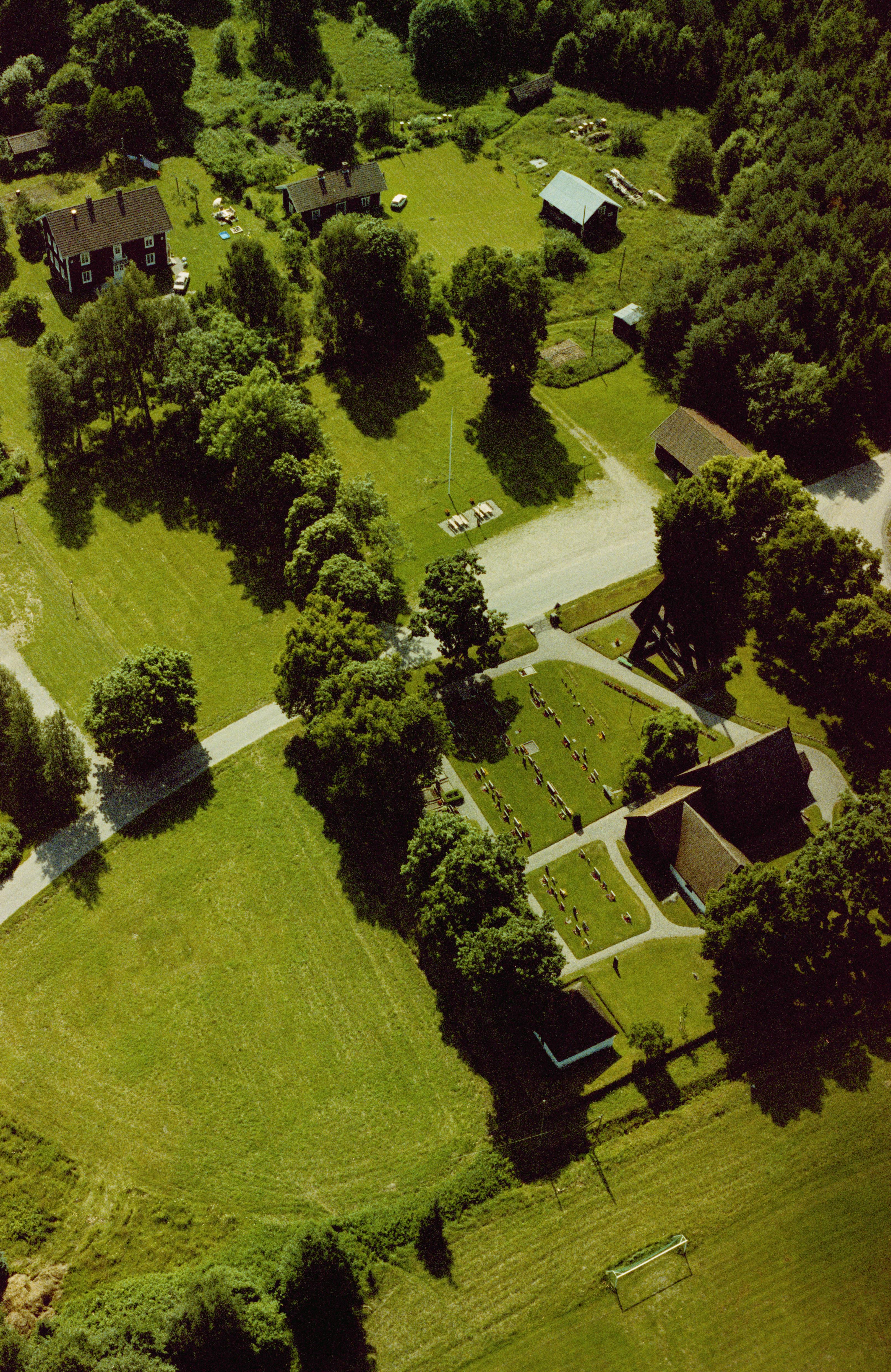 Beskrivning: Tångeråsa kyrka. I bildens övre del Tångeråsa klockargård. Bilden är tagen mot (väderstreck): SSV