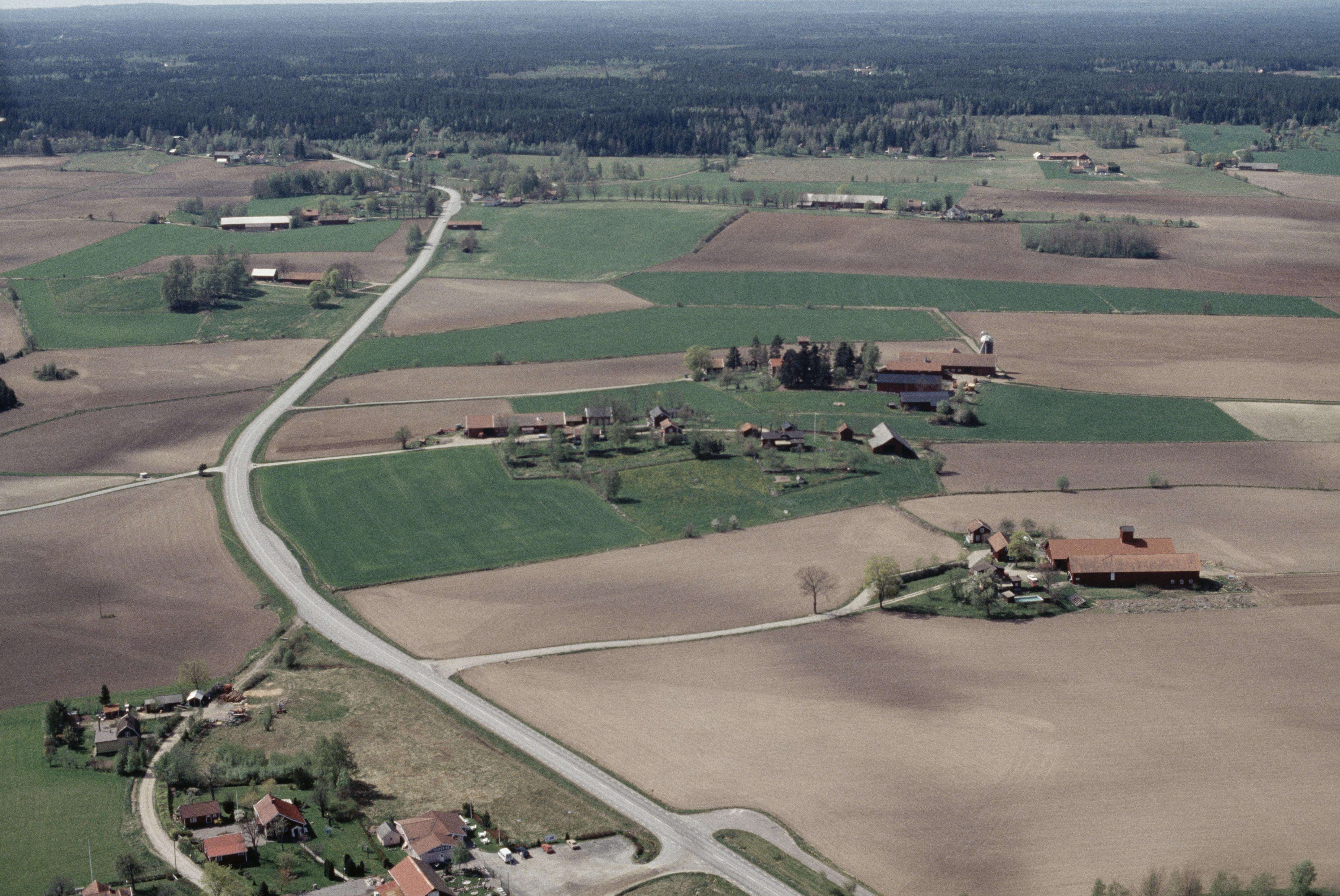 Beskrivning: Vibyslätten innan vägbygge av E3 / E20 sydväst om Vibysjön. I bildens övre del Västra Backa, Västra Härja och Lindbacka. Bytomt RAÄnr Viby 348 m.fl. Bilden är tagen mot (väderstreck): V