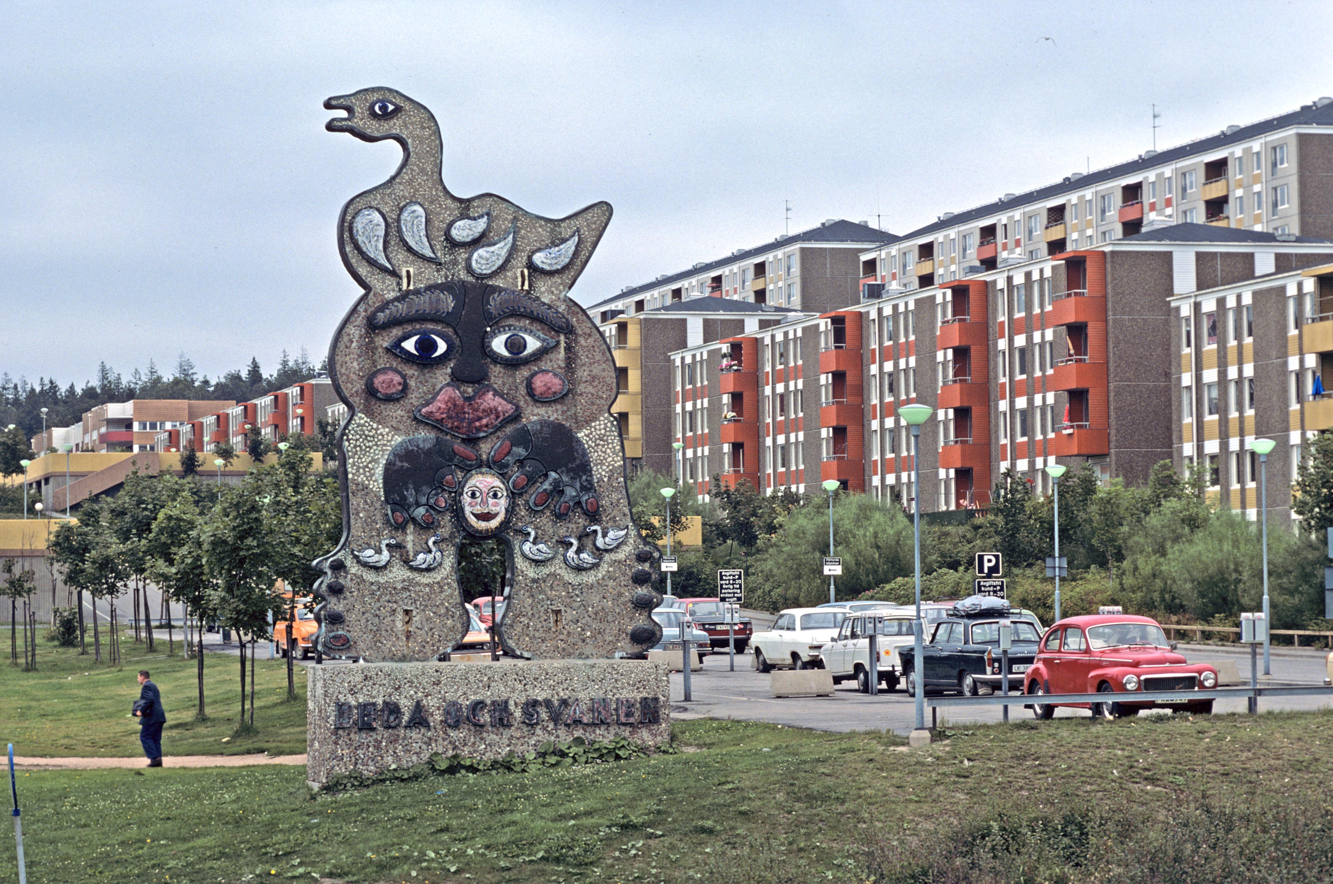 Statyn i förgrunden, bakom syns bostadsområdet Lövgärdet.