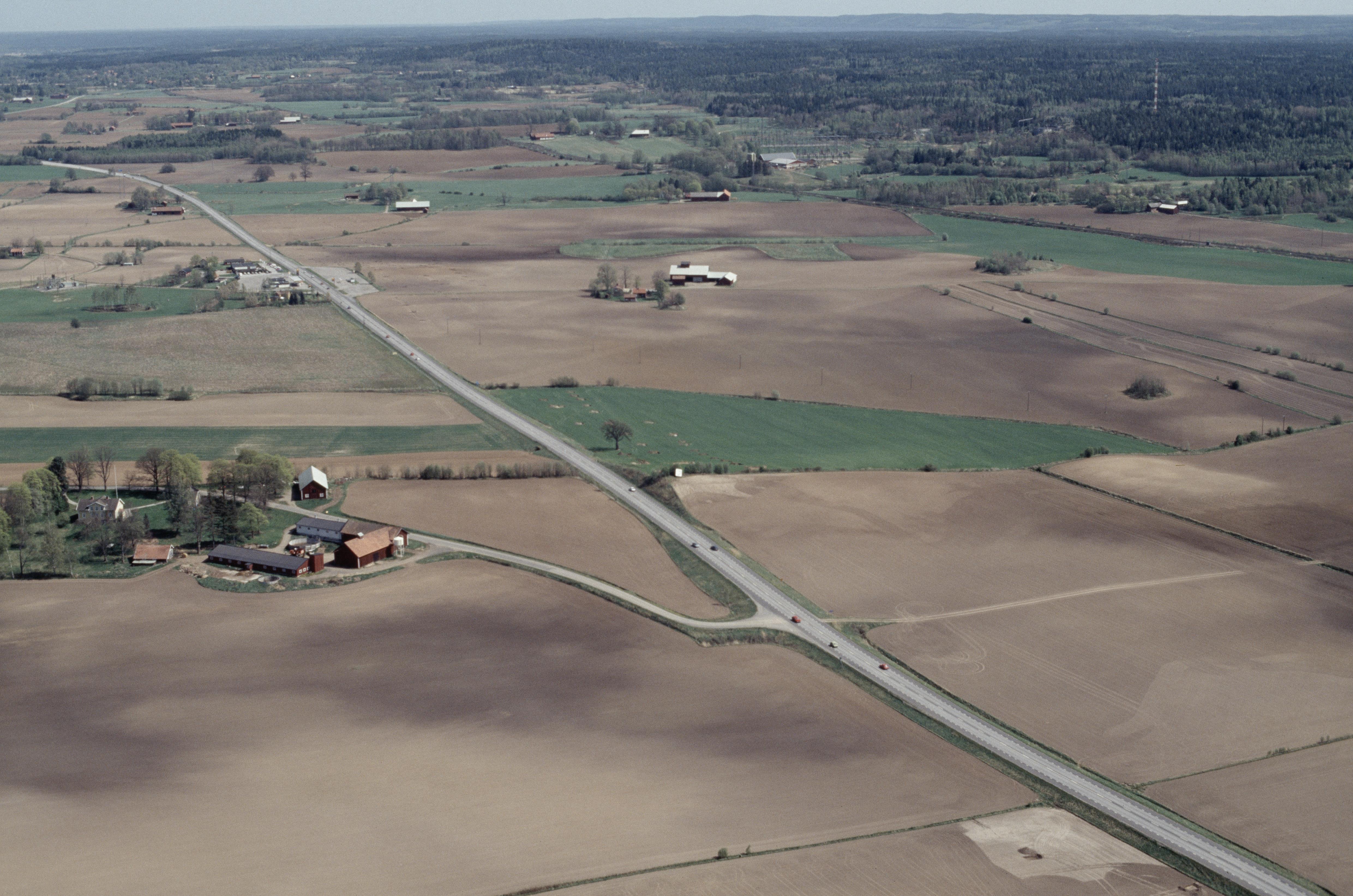 Beskrivning: Arkeologisk undersökning innan vägbygge av E3 / E20 sydost om Vibysjön. Gravfält RAÄnr Viby 218:1 vid bildens mitt. Bilden är tagen mot (väderstreck): SO
