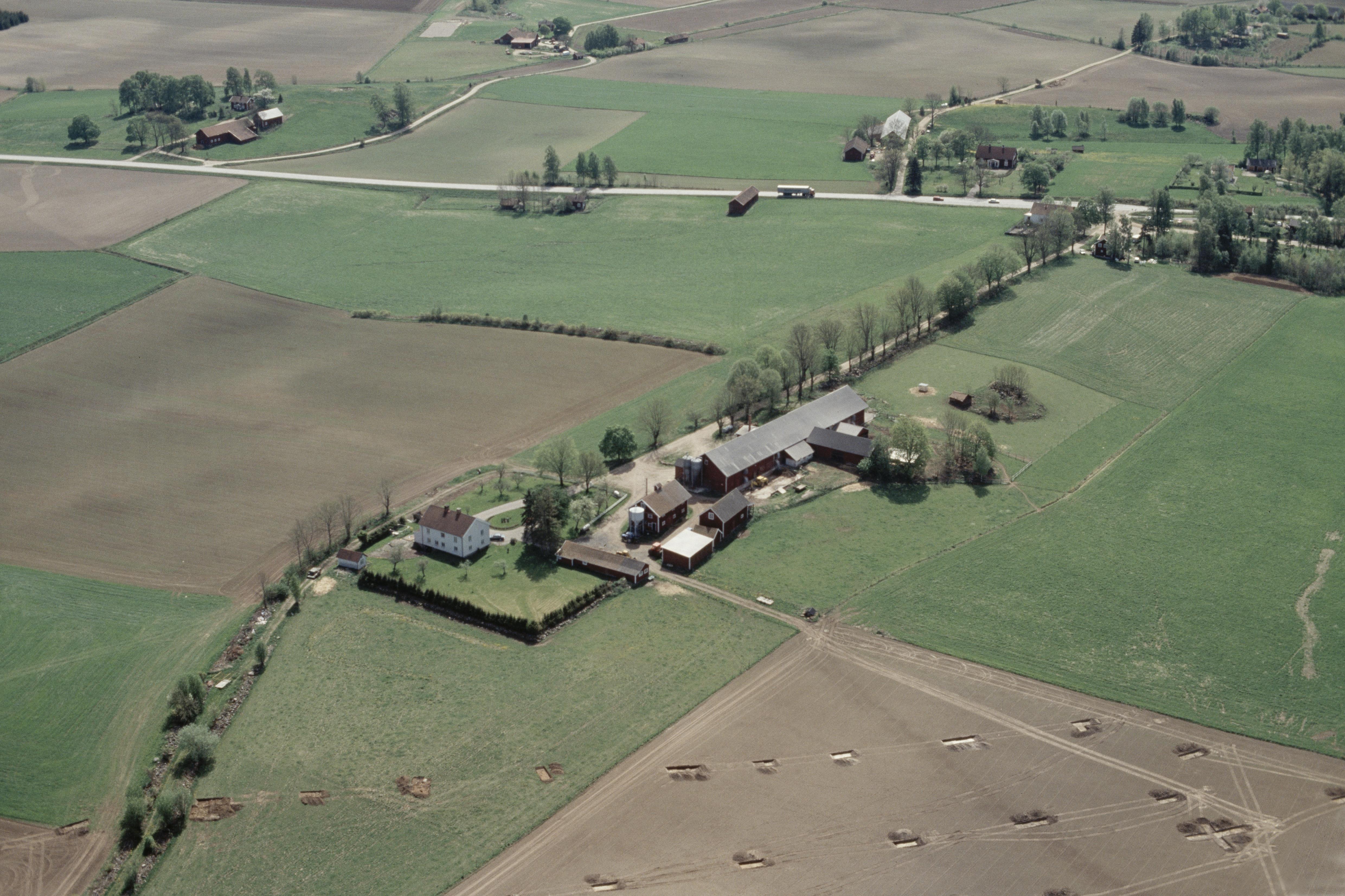 Beskrivning: Vibyslätten sydväst om Vibysjön. Gårdarna Västra Backa, Södra Öna m.fl. Arkeologiska undersökningar innan vägbygge av E3 / E20. Bytomt RAÄnr Viby 348 m.fl. Bilden är tagen mot (väderstreck): SSO