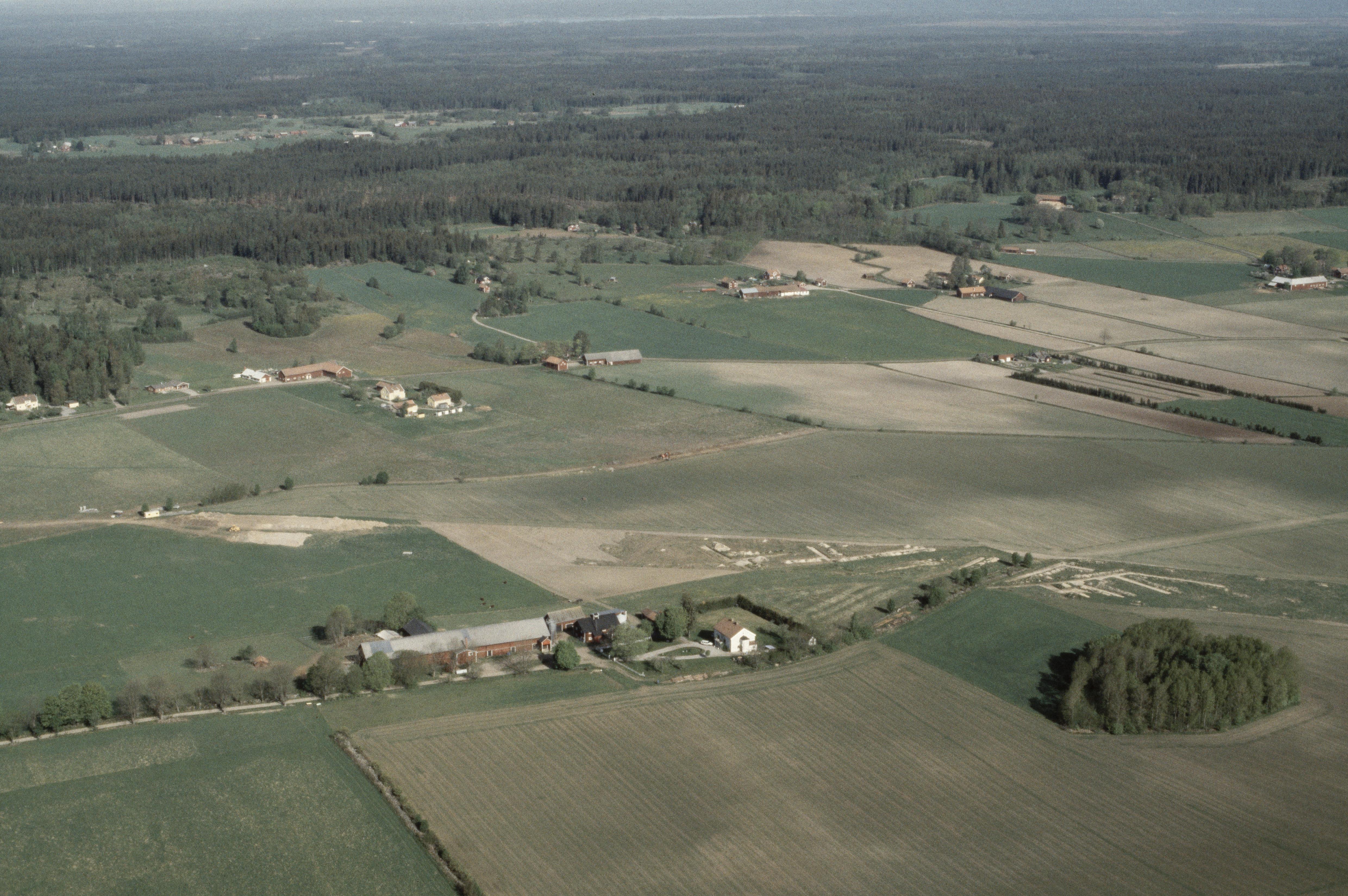 Beskrivning: Vibyslätten sydväst om Vibysjön. Gårdarna Västra Backa, Södra Öna m.fl. Arkeologiska undersökningar innan vägbygge av E3 / E20. Bytomt RAÄnr Viby 348 m.fl. Bilden är tagen mot (väderstreck): V