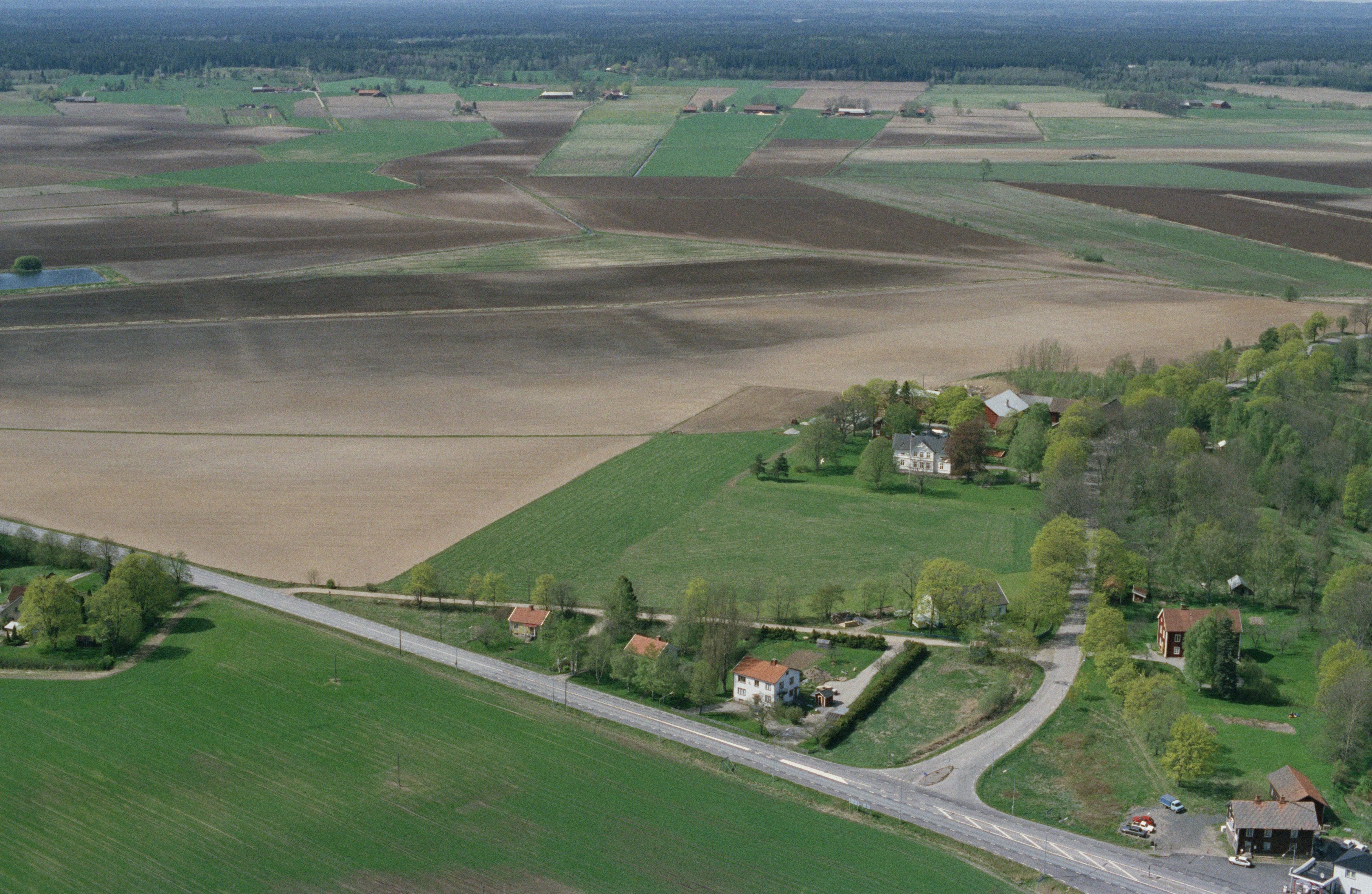 Beskrivning: Till höger om bildens mitt Lilla Vretstorps gård innan vägbygge av E3 / E20 sydost om Vibysjön. Bilden är tagen mot (väderstreck): NV