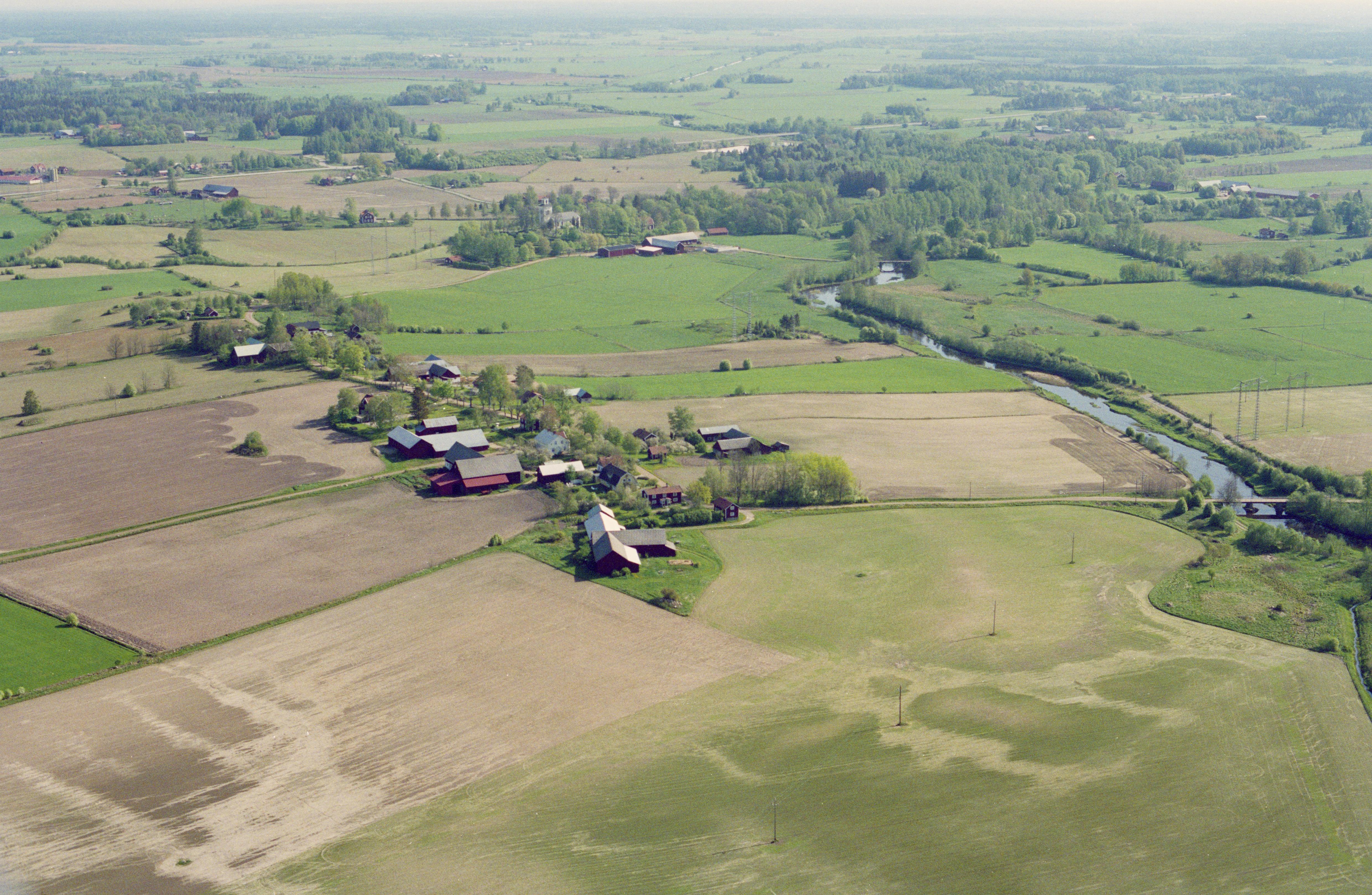 Beskrivning: Spånga by vid Svartån. Till vänster över bildens mitt Vintrosa kyrka. Bilden är tagen mot (väderstreck): NO