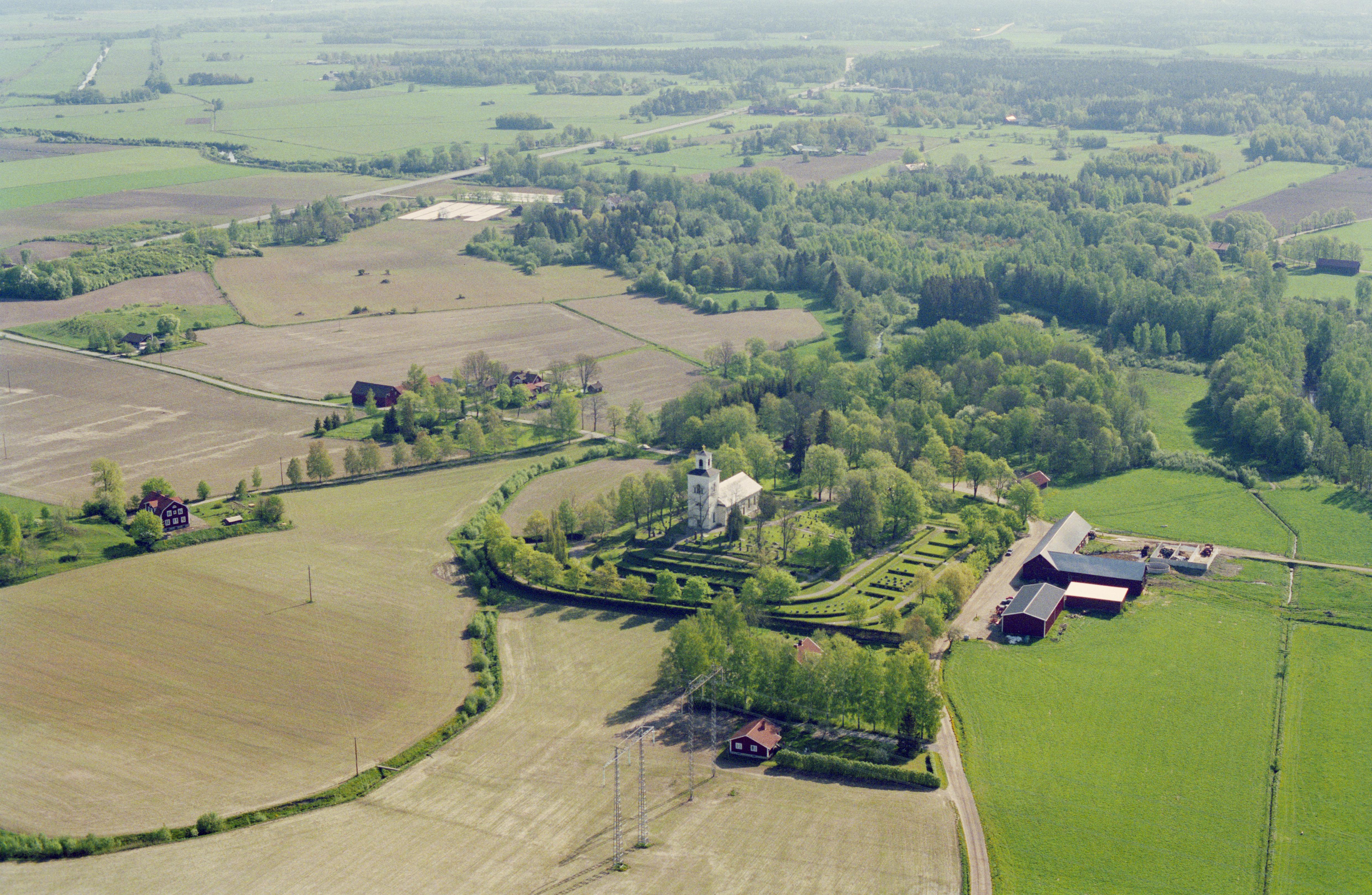 Beskrivning: Vintrosa kyrka och kyrkby vid Svartån. Bilden är tagen mot (väderstreck): NO