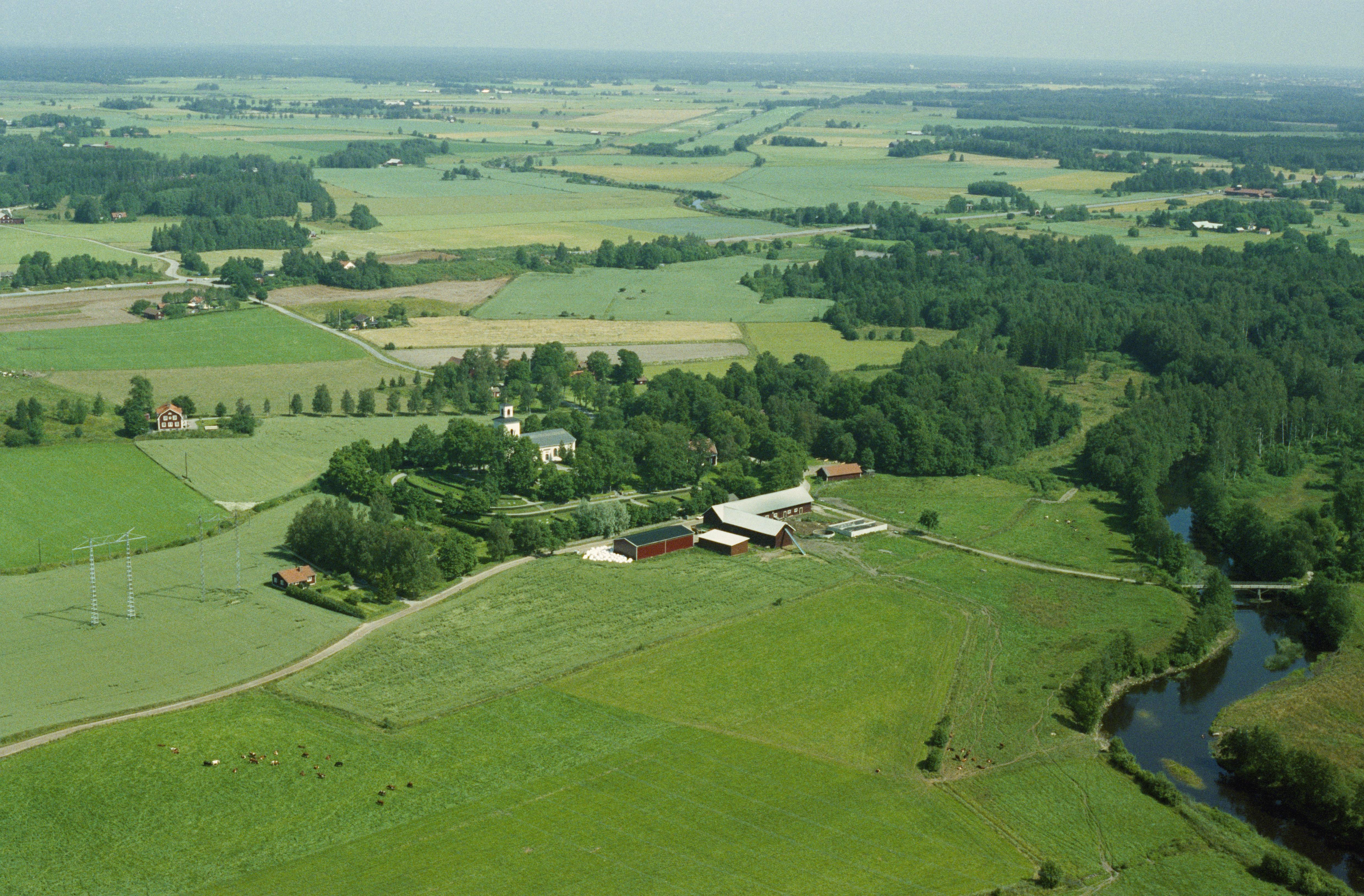 Beskrivning: Vintrosa kyrka och kyrkby vid Svartån. Bilden är tagen mot (väderstreck): NO