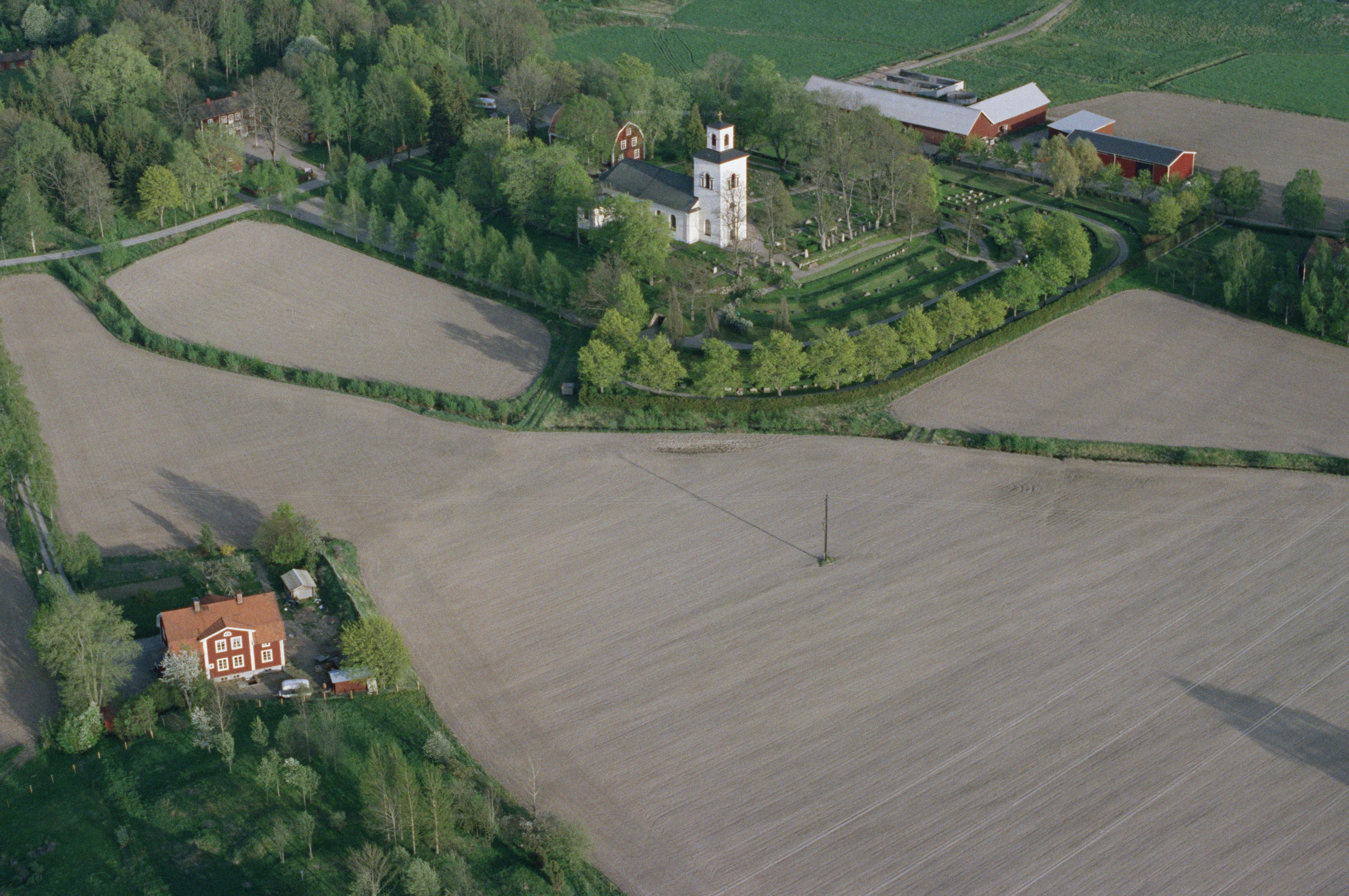Beskrivning: Vintrosa kyrka och kyrkby vid Svartån. Bilden är tagen mot (väderstreck): SO