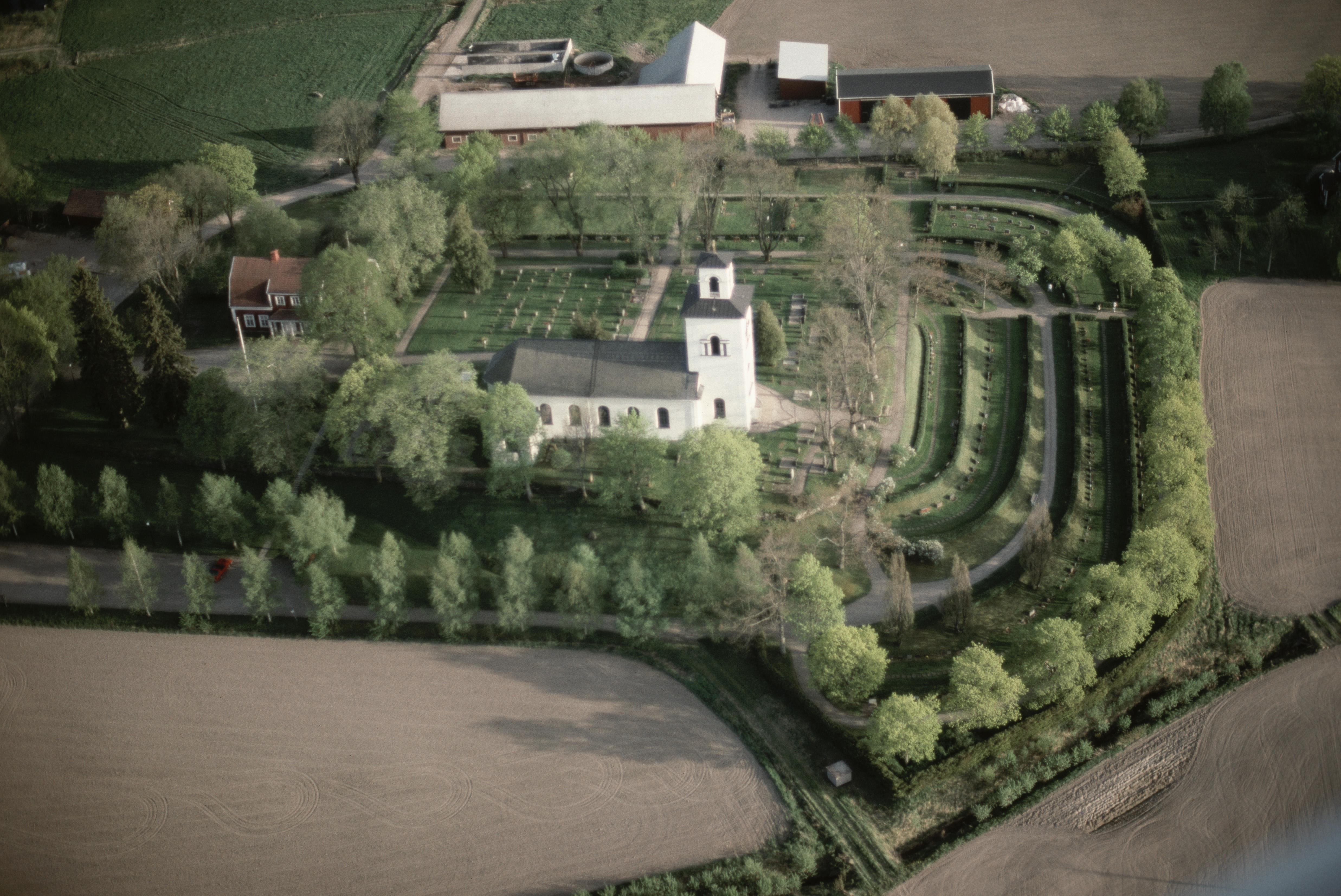Beskrivning: Vintrosa kyrka och kyrkby vid Svartån. Bilden är tagen mot (väderstreck): S