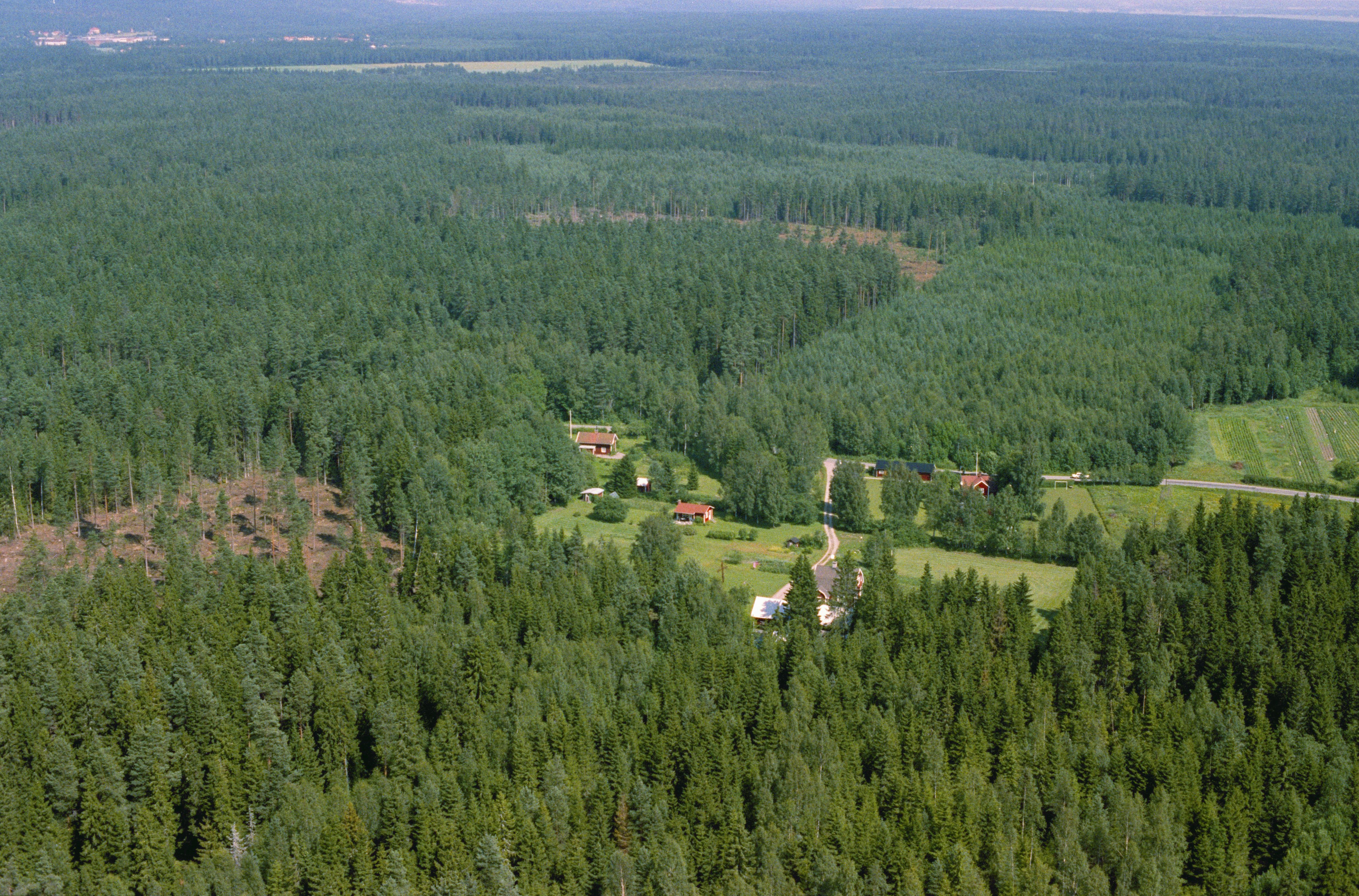 Beskrivning: Granalunds by vid gränsen mot Tysslinge socken (i bildens övre del). Bilden är tagen mot (väderstreck): NNO