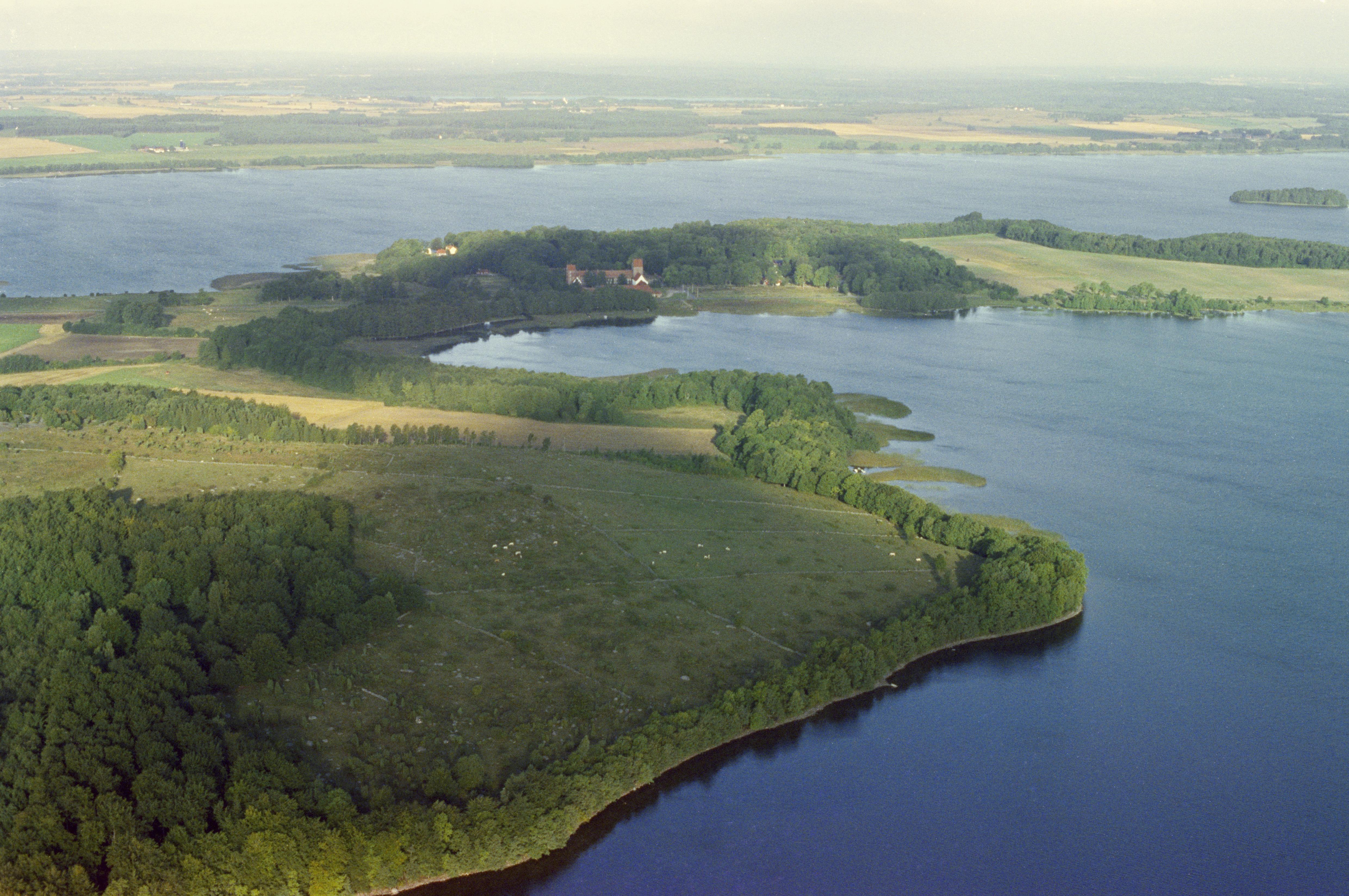 Beskrivning: Kjugekull och Skiparyd. Fornlämningsområde med bl.a. boplats RAÄnr Kiaby 89:1 och stenkrets Kiaby 43:1-3 vid bildens mitt. I bildens övre del Bäckaskogs slott. Bilden är tagen mot (väderstreck): NV