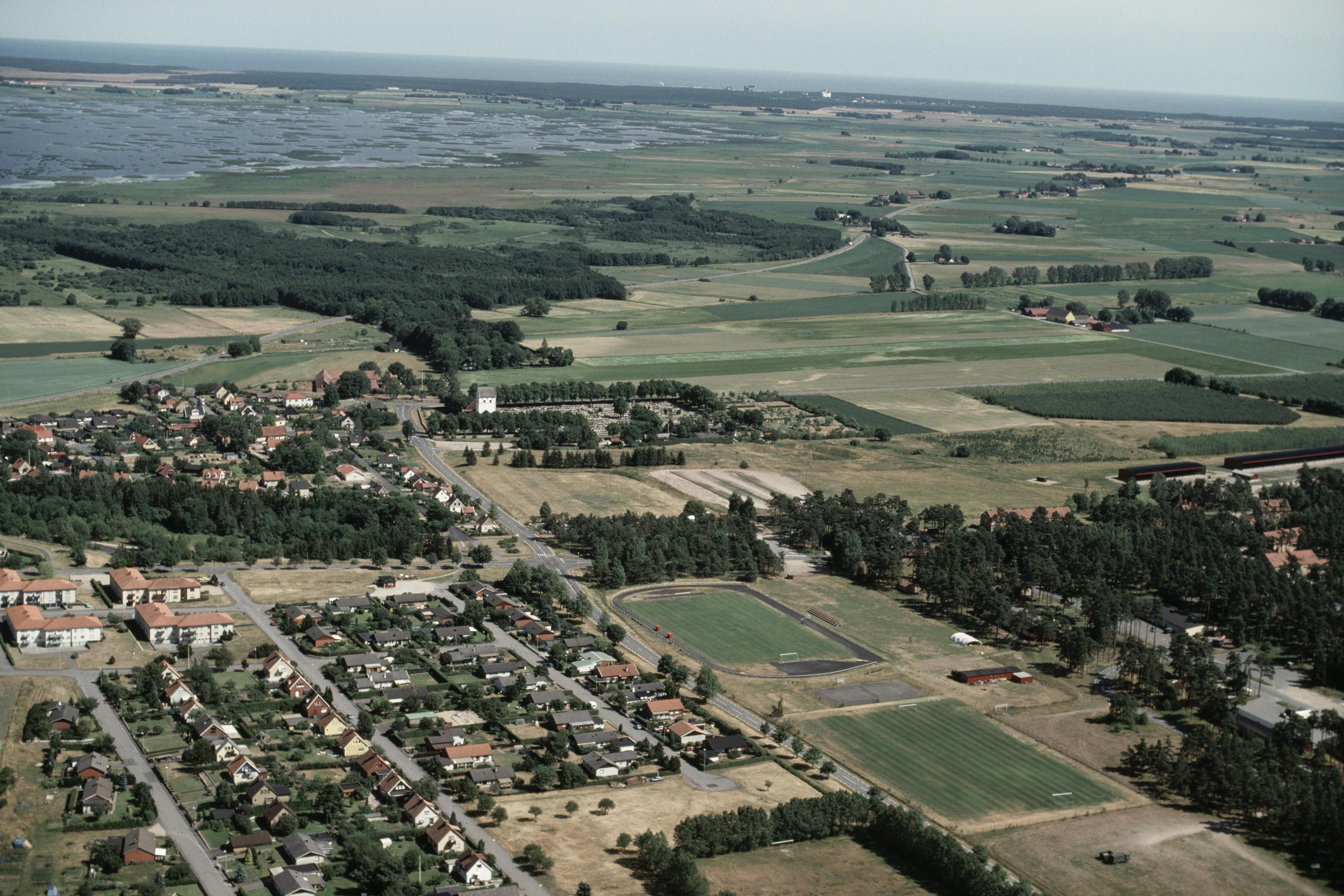 Beskrivning: Norra Åsum kyrka vid bildens mitt. Bilden är tagen mot (väderstreck): Ö