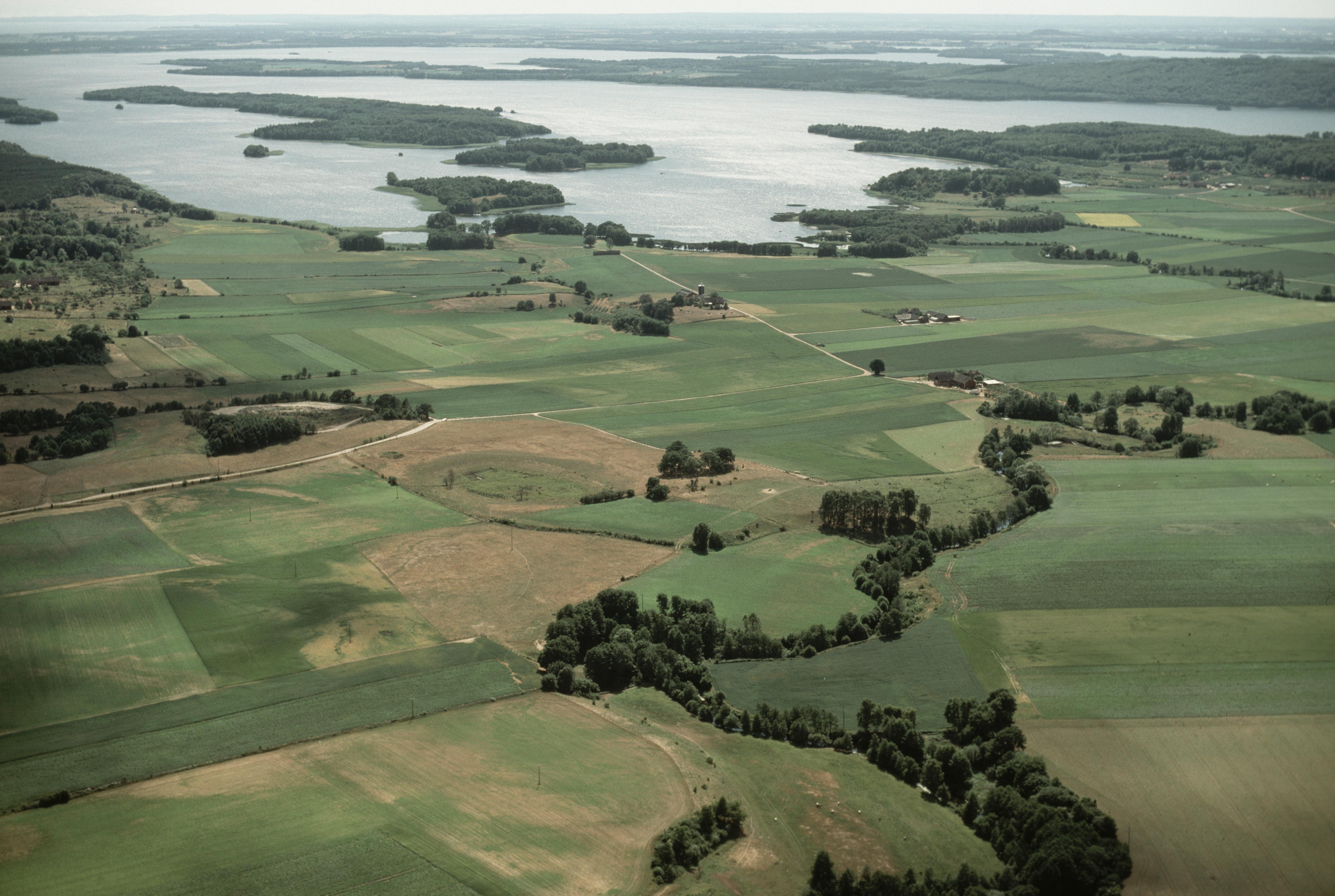 Beskrivning: Gravfält Näsums gudahage RAÄnr Näsum 5:1 vid Holjeån. I bildens övre del Ivösjön. Bilden är tagen mot (väderstreck): SSV