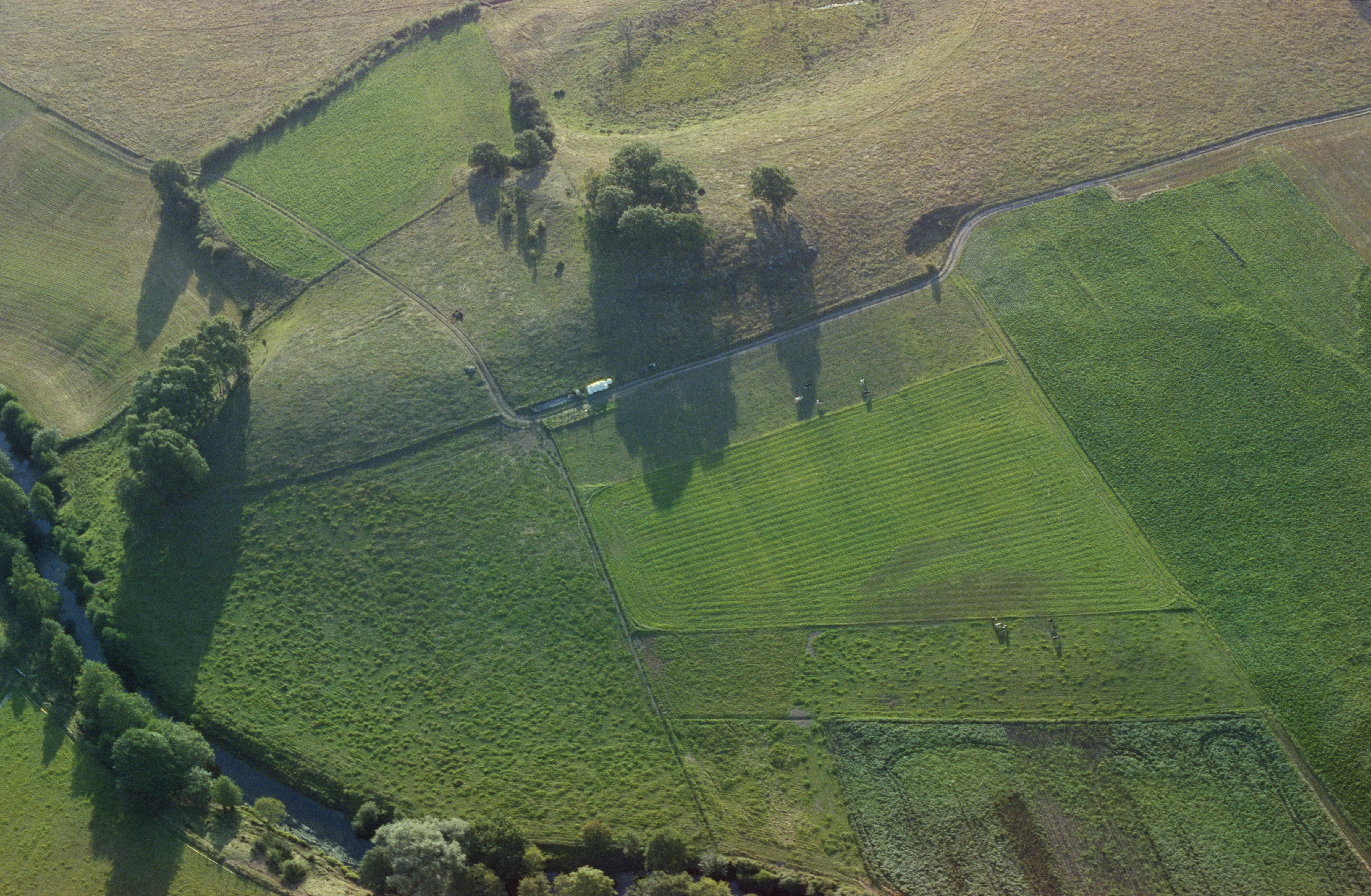 Beskrivning: Gravfält Näsums gudahage RAÄnr Näsum 5:1 vid Holjeån. Bilden är tagen mot (väderstreck): SV