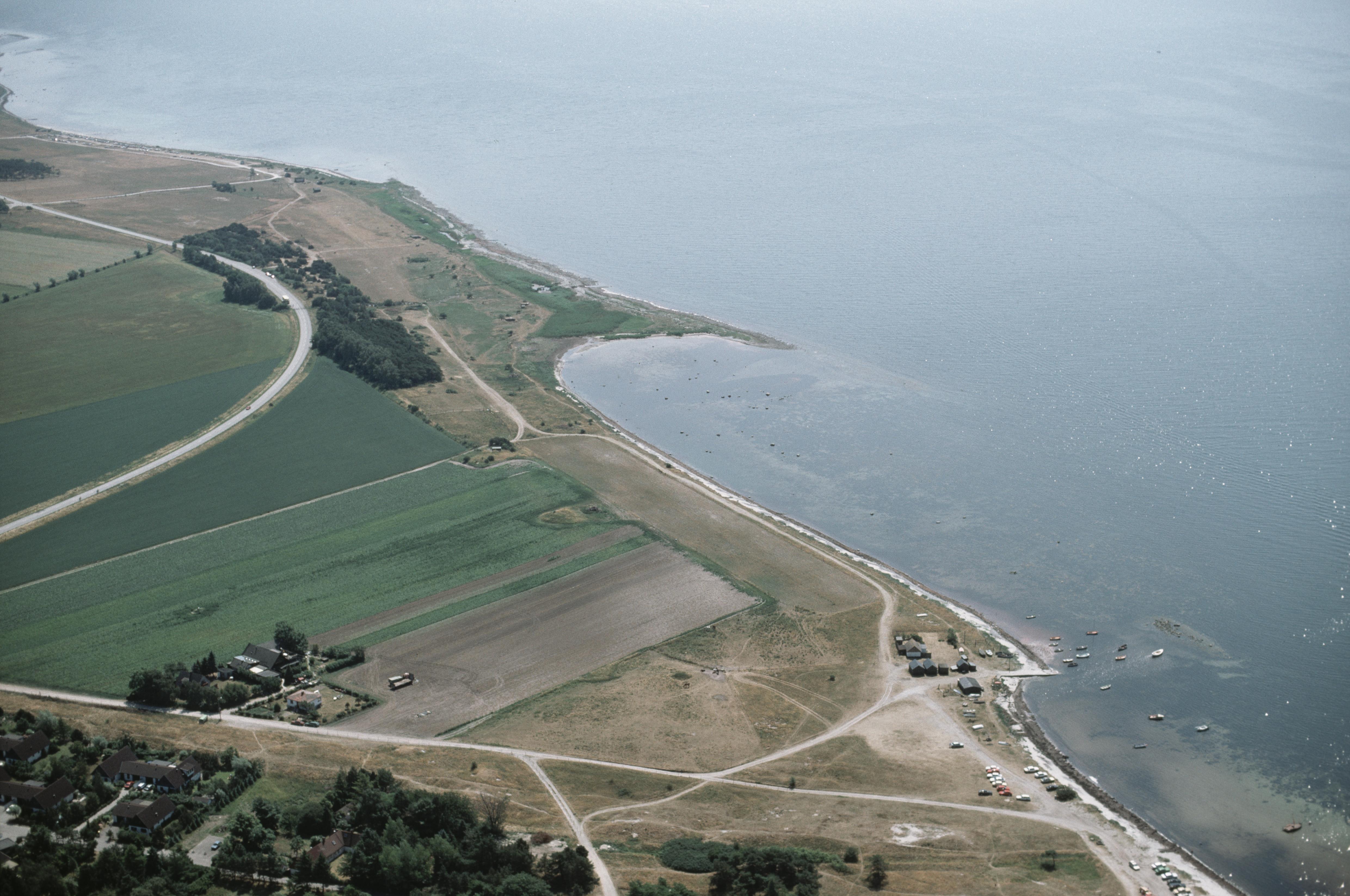 Beskrivning: Bostadsområdet Kämpinge (tid. fiskeläge) i sydöstra delen av tätorten Höllviken. Kar, vall RAÄnr Räng 20:1 och hög Räng 12:1 på stranden vid bildens mitt. Bilden är tagen mot (väderstreck): SO