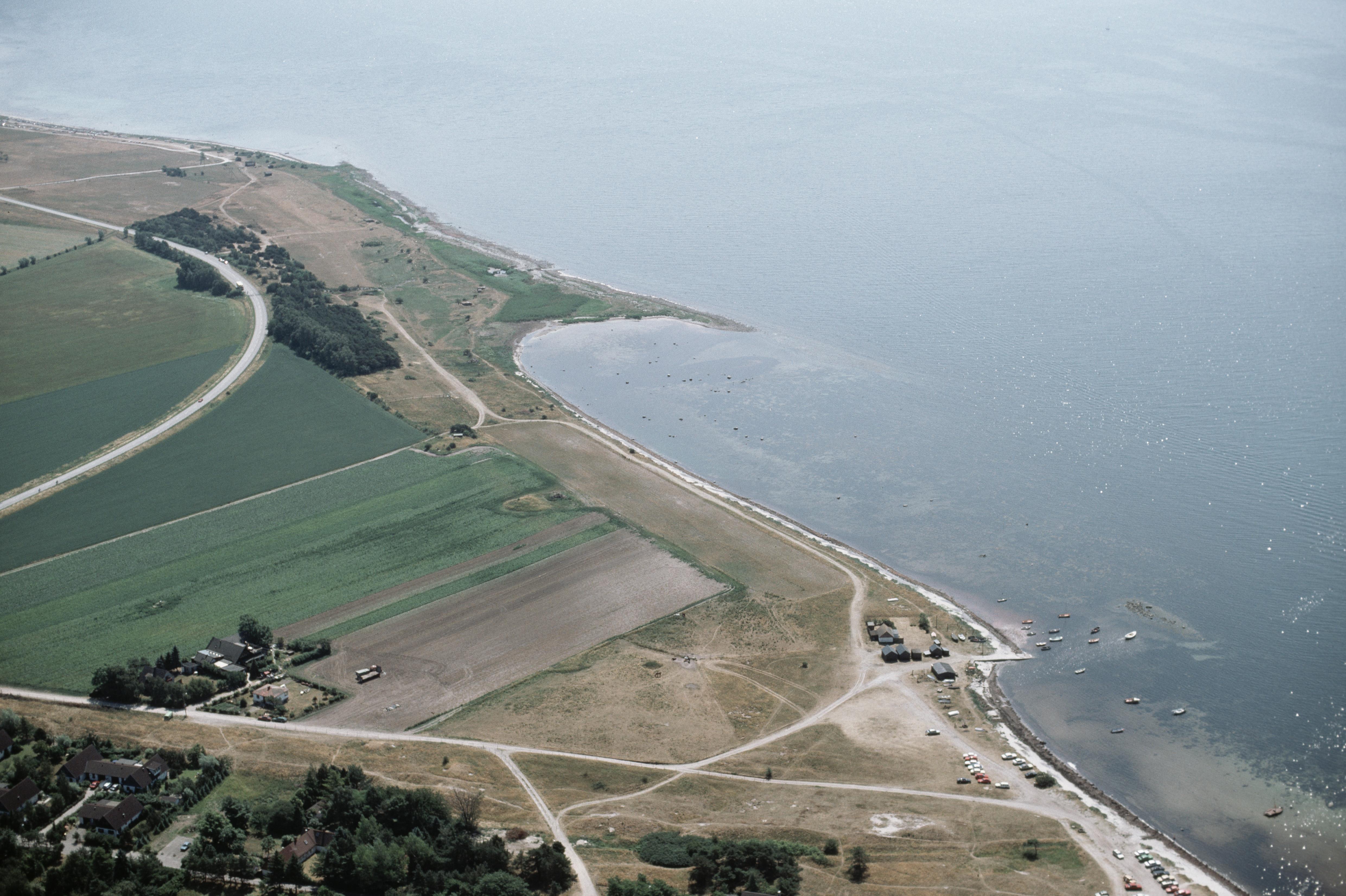 Beskrivning: Bostadsområdet Kämpinge (tid. fiskeläge) i sydöstra delen av tätorten Höllviken. Kar, vall RAÄnr Räng 20:1 och hög Räng 12:1 på stranden vid bildens mitt. Bilden är tagen mot (väderstreck): SO