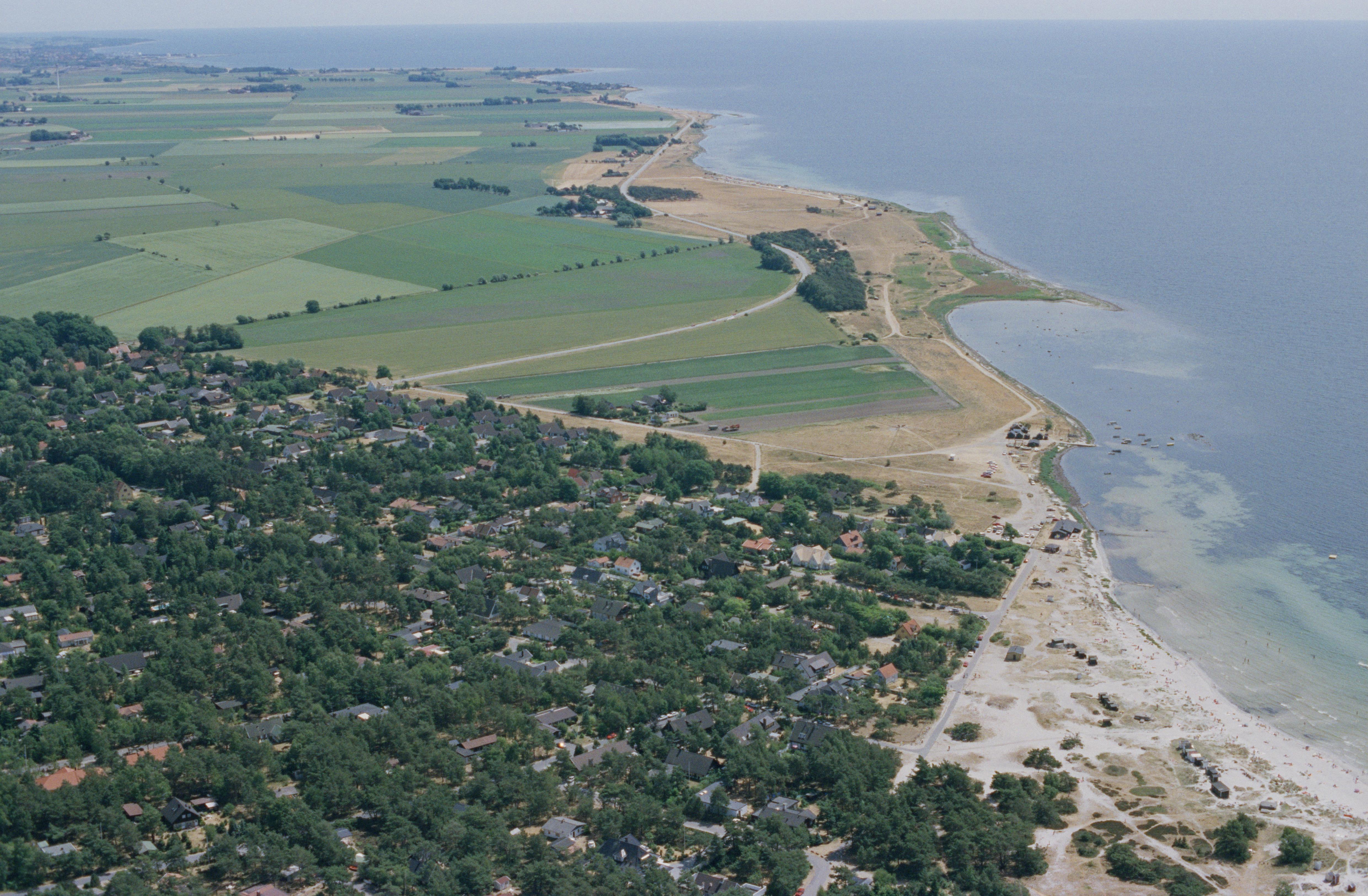 Beskrivning: Bostadsområdet Kämpinge (tid. fiskeläge) i sydöstra delen av tätorten Höllviken. Kar och hög RAÄnr Räng 12:1 på stranden över bildens mitt. Bilden är tagen mot (väderstreck): SO
