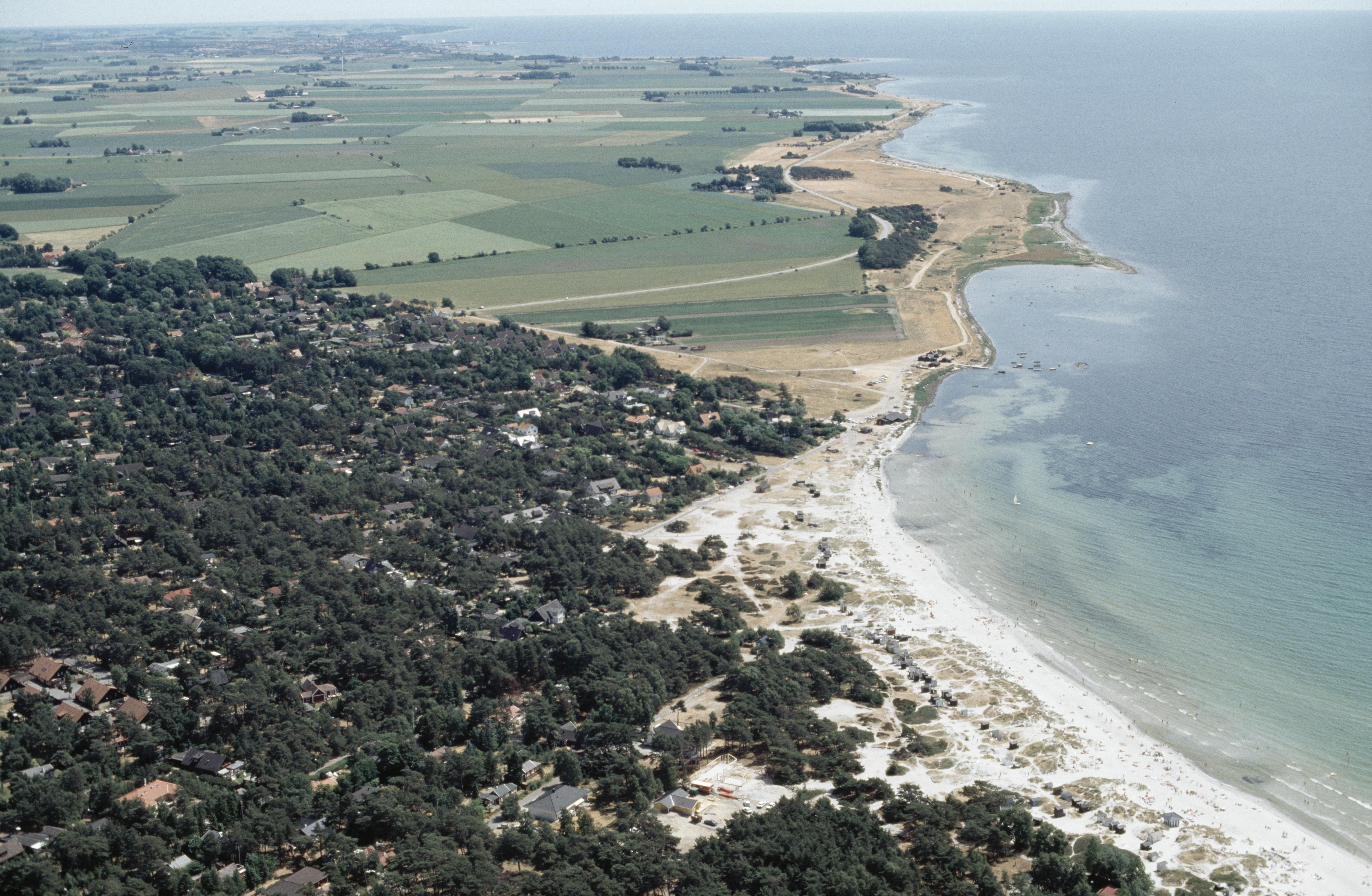 Beskrivning: Bostadsområdet Kämpinge (tid. fiskeläge) i sydöstra delen av tätorten Höllviken. Kar och hög RAÄnr Räng 12:1 på stranden över bildens mitt. Bilden är tagen mot (väderstreck): SO