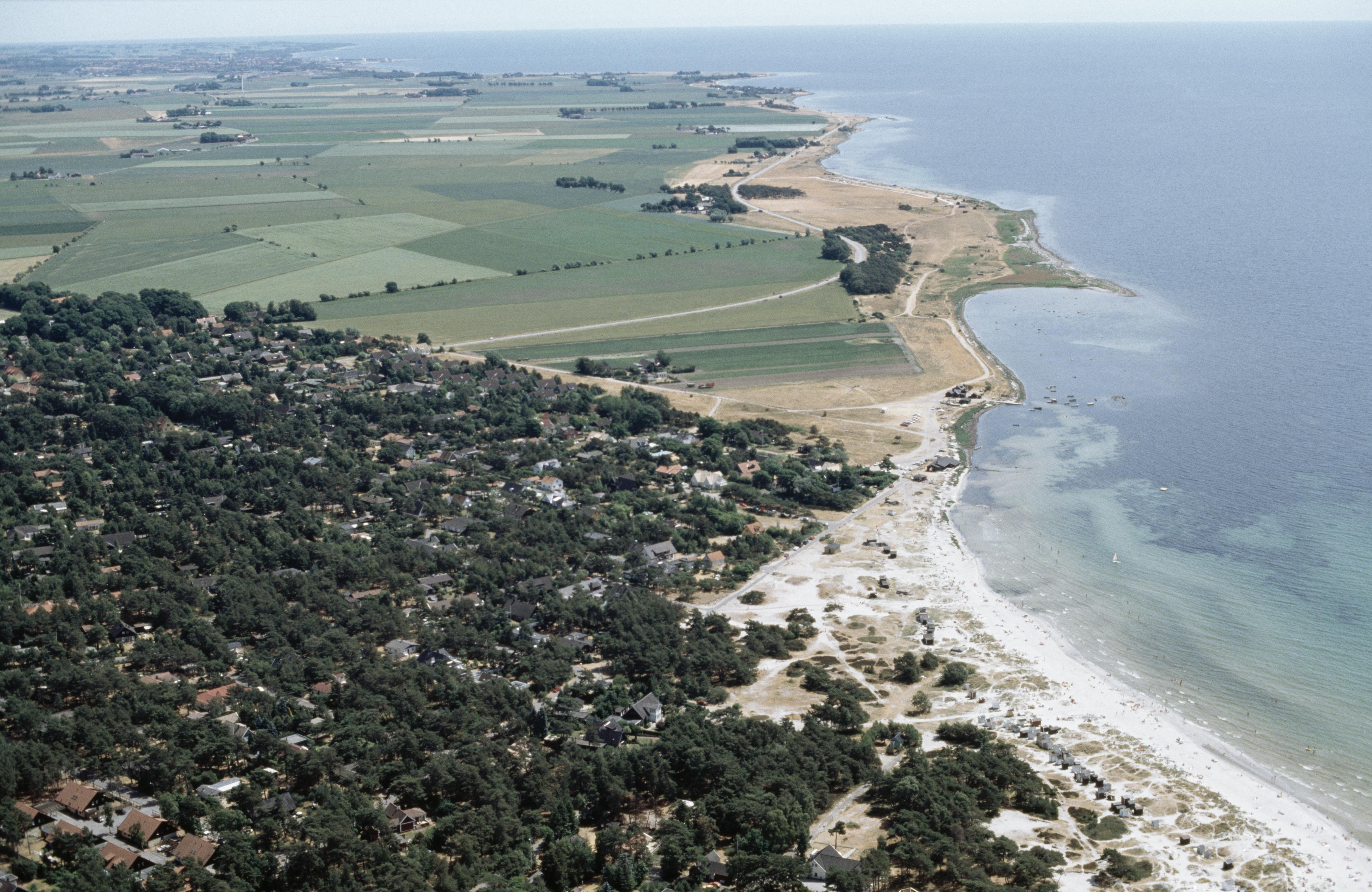 Beskrivning: Bostadsområdet Kämpinge (tid. fiskeläge) i sydöstra delen av tätorten Höllviken. Kar och hög RAÄnr Räng 12:1 på stranden vid bildens mitt. Bilden är tagen mot (väderstreck): SO