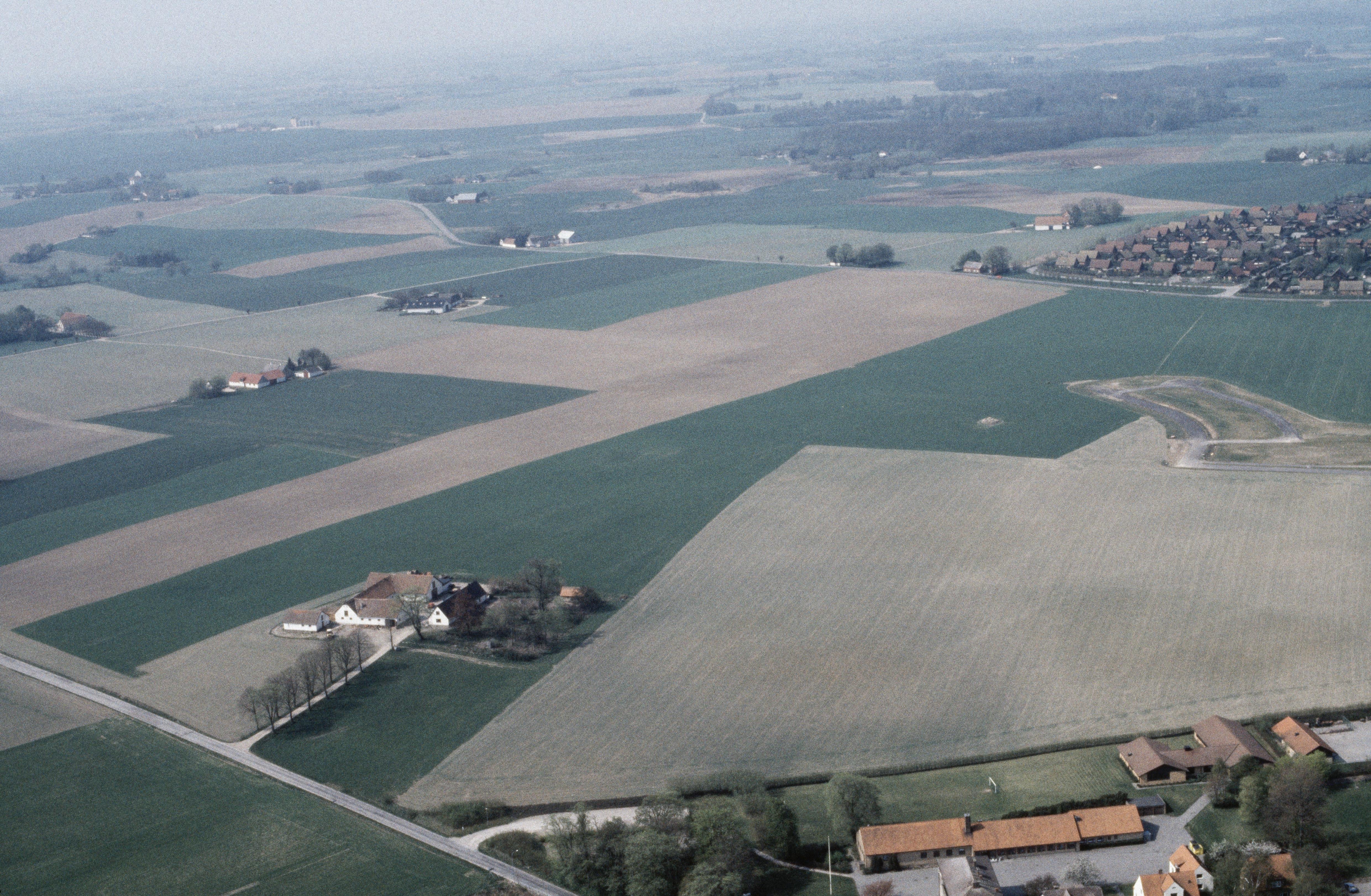 Beskrivning: MacLeans åkrar i området vid Saritslöv. I bildens nedre del Kyrkogatan söder i tätorten Skurup. Bilden är tagen mot (väderstreck): NV